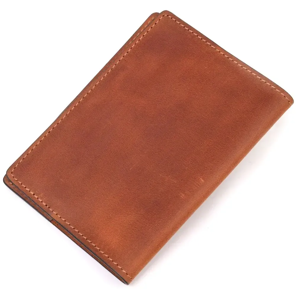 Оригінальна обкладинка на паспорт із вінтажної шкіри Україна GRANDE PELLE 16728 Світло-коричнева