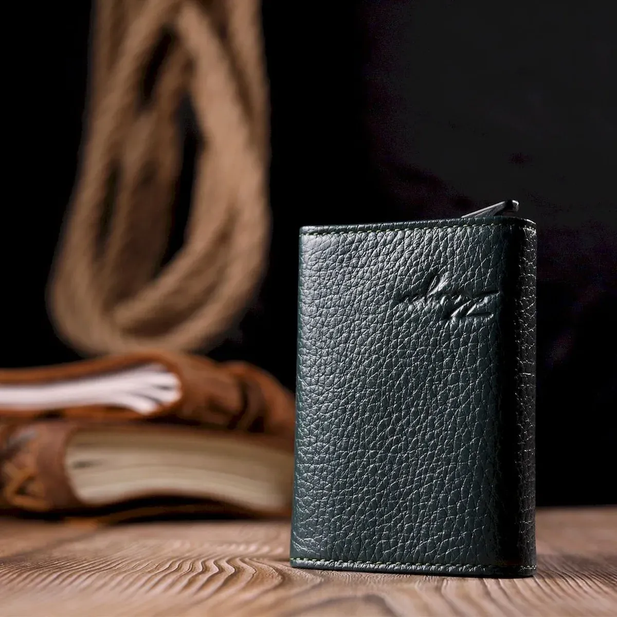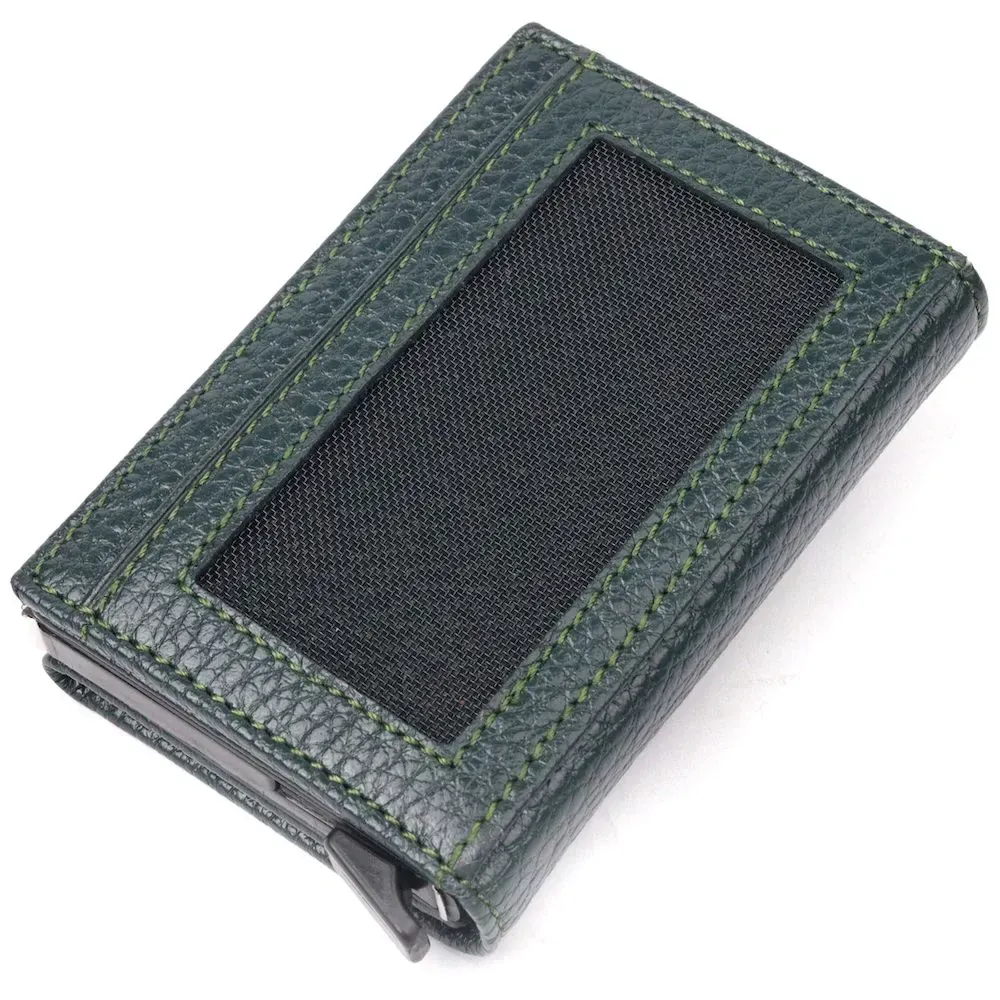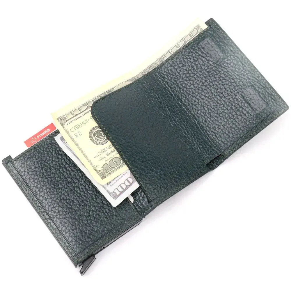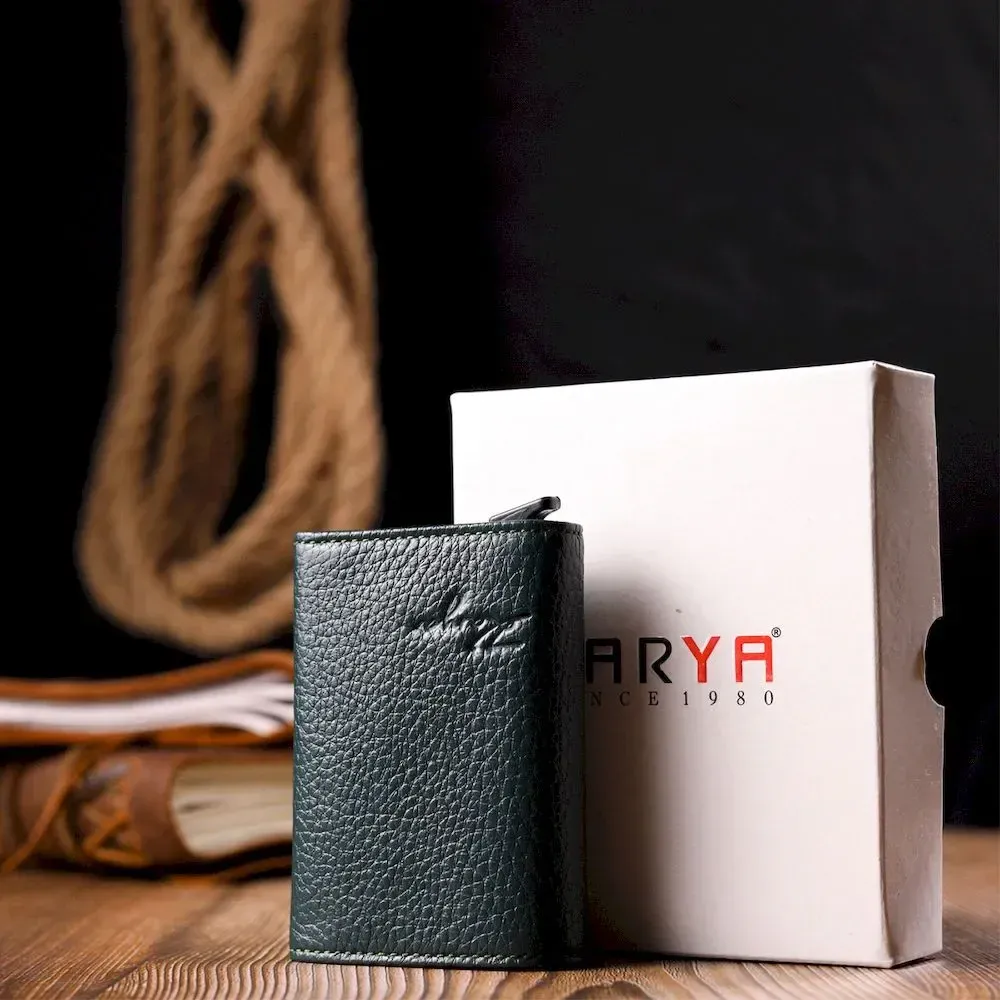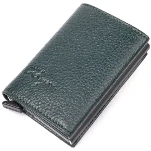 Оригінальна візитниця з натуральної зернистої шкіри KARYA 20976 Зелений