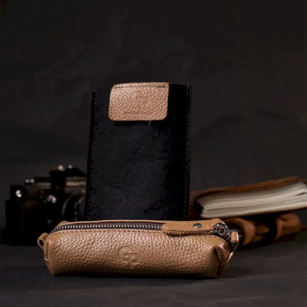 Оригінальна жіноча шкіряна ключниця GRANDE PELLE 11639 Бежевий