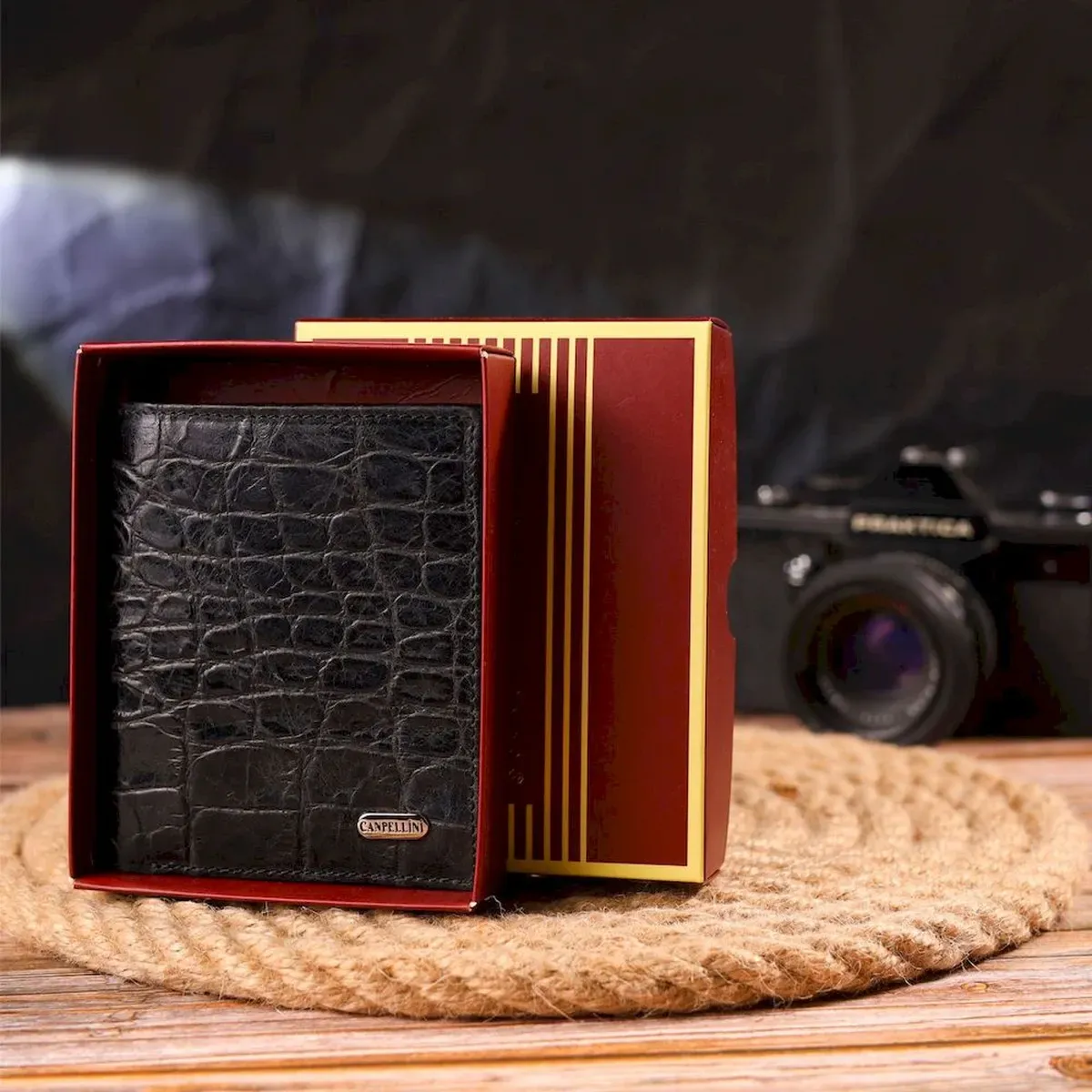 Оригінальне чоловіче портмоне з натуральної фактурної шкіри CANPELLINI 21502 Чорне