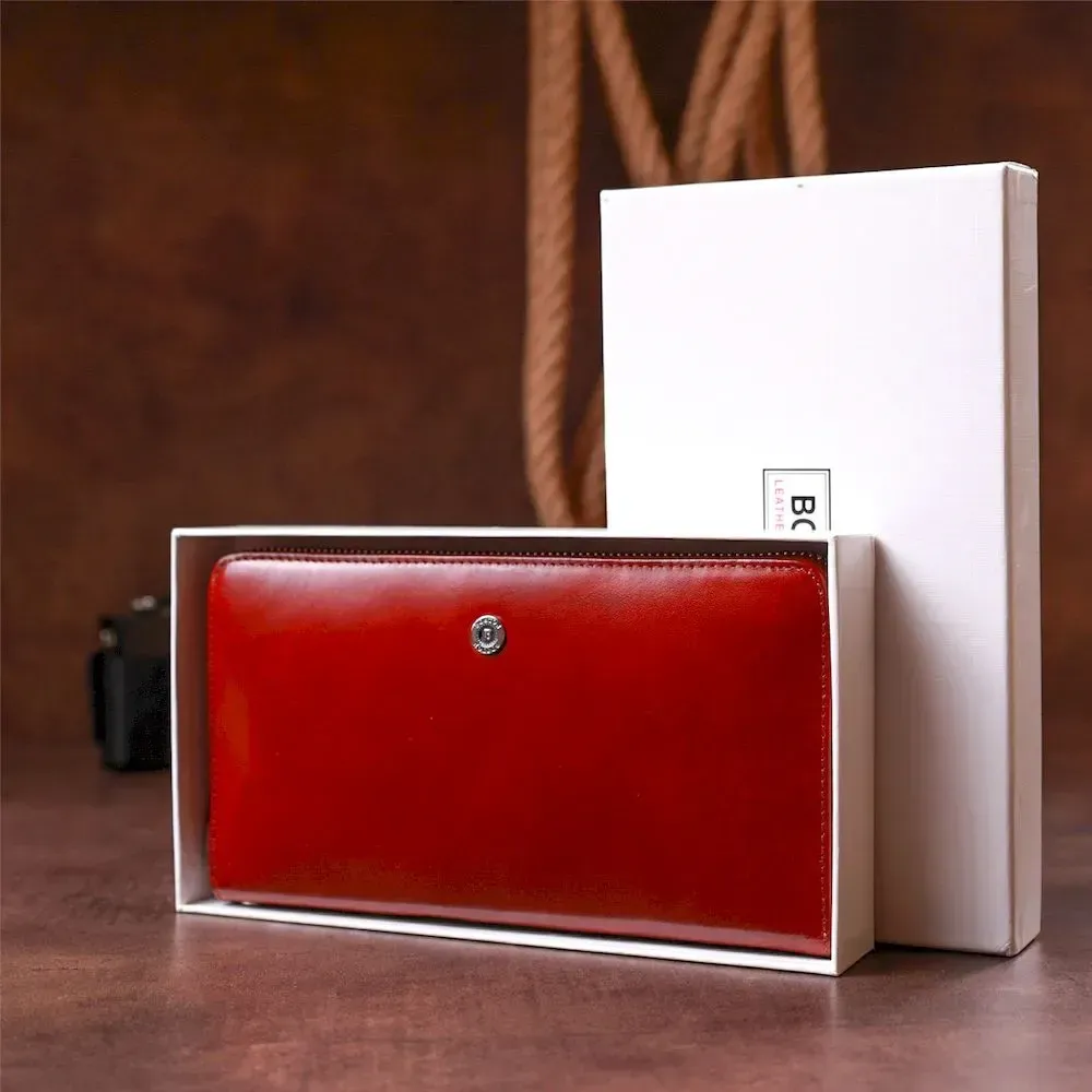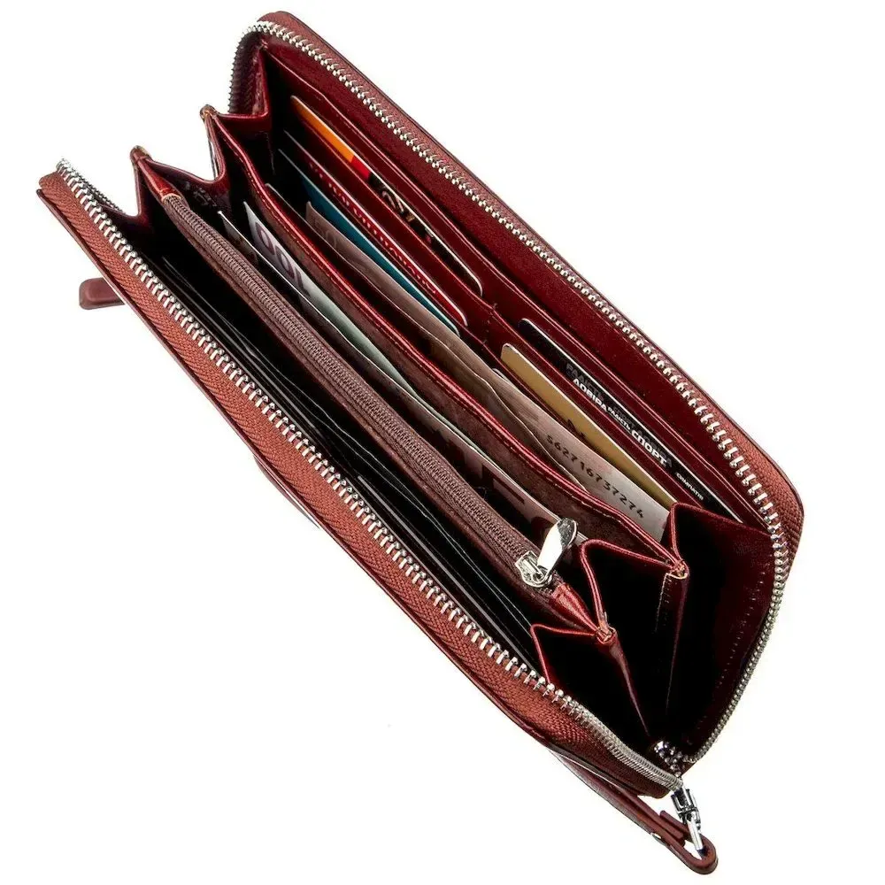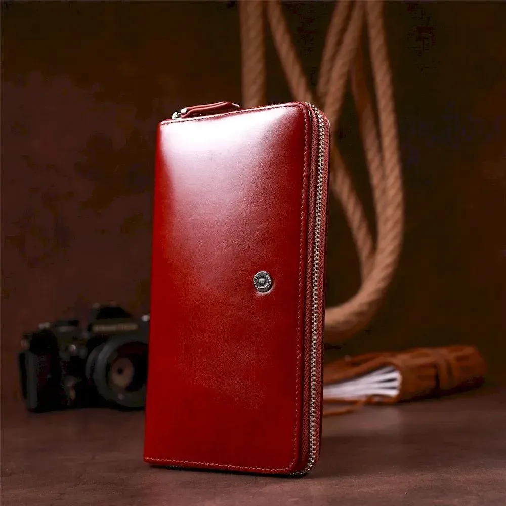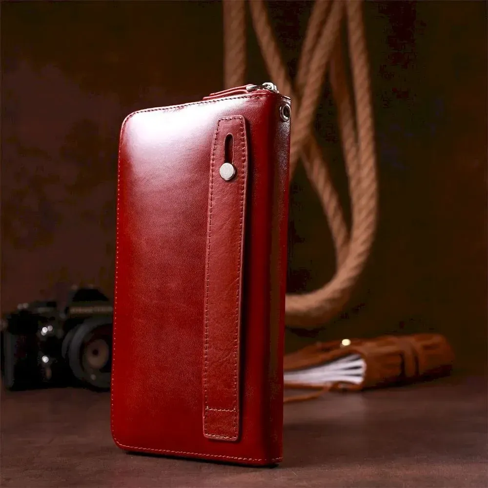 Стильний чоловічий портмоне-клатч з безліччю відділень та кишень. Портмоне красивий стильний коричневий з червоним відтінком. Виконано з приємної на дотик натуральної шкіри високої якості. Дане портмоне обов'язково підкреслить Вашу безпосередність та відмінний смак. Воно досить практичне та оригінальне. Портмоне може виконувати функцію як звичайного гаманця, так і окремого щоденного аксесуара, який легко носитися за допомогою ременя на зап'ястя або ручки на тильній стороні. Цей виріб чудово підійде на подарунок Вашому коханому чоловікові. Запаковано воно у фірмову картонну коробку.