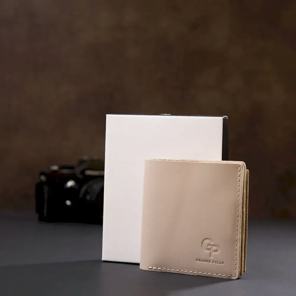 Оригінальне жіноче портмоне з монетницею GRANDE PELLE 11369 Бежевий