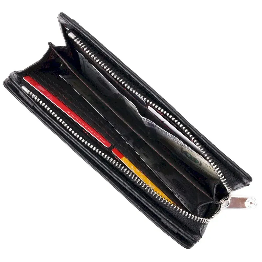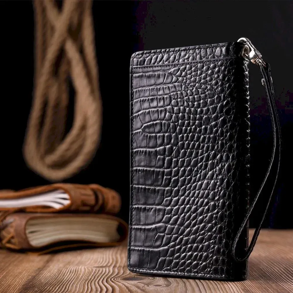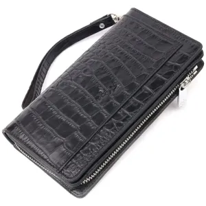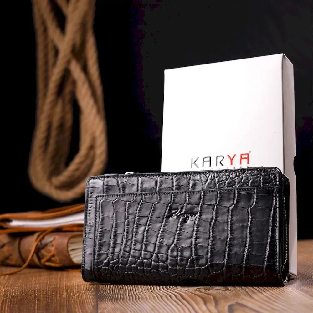 Оригінальний гаманець-клатч із натуральної шкіри з тисненням під крокодила KARYA 21137 Чорний