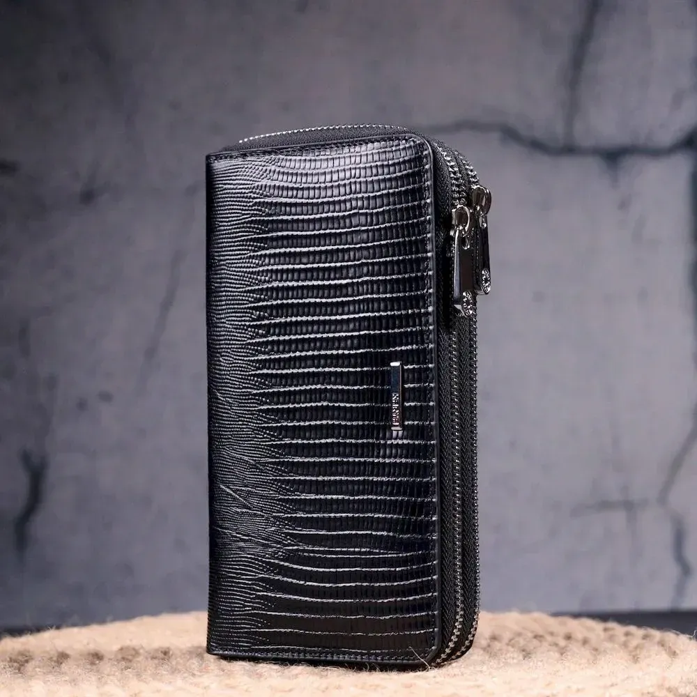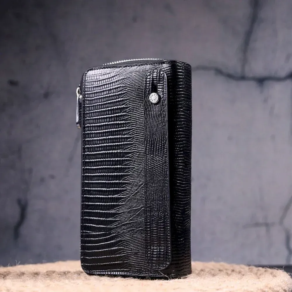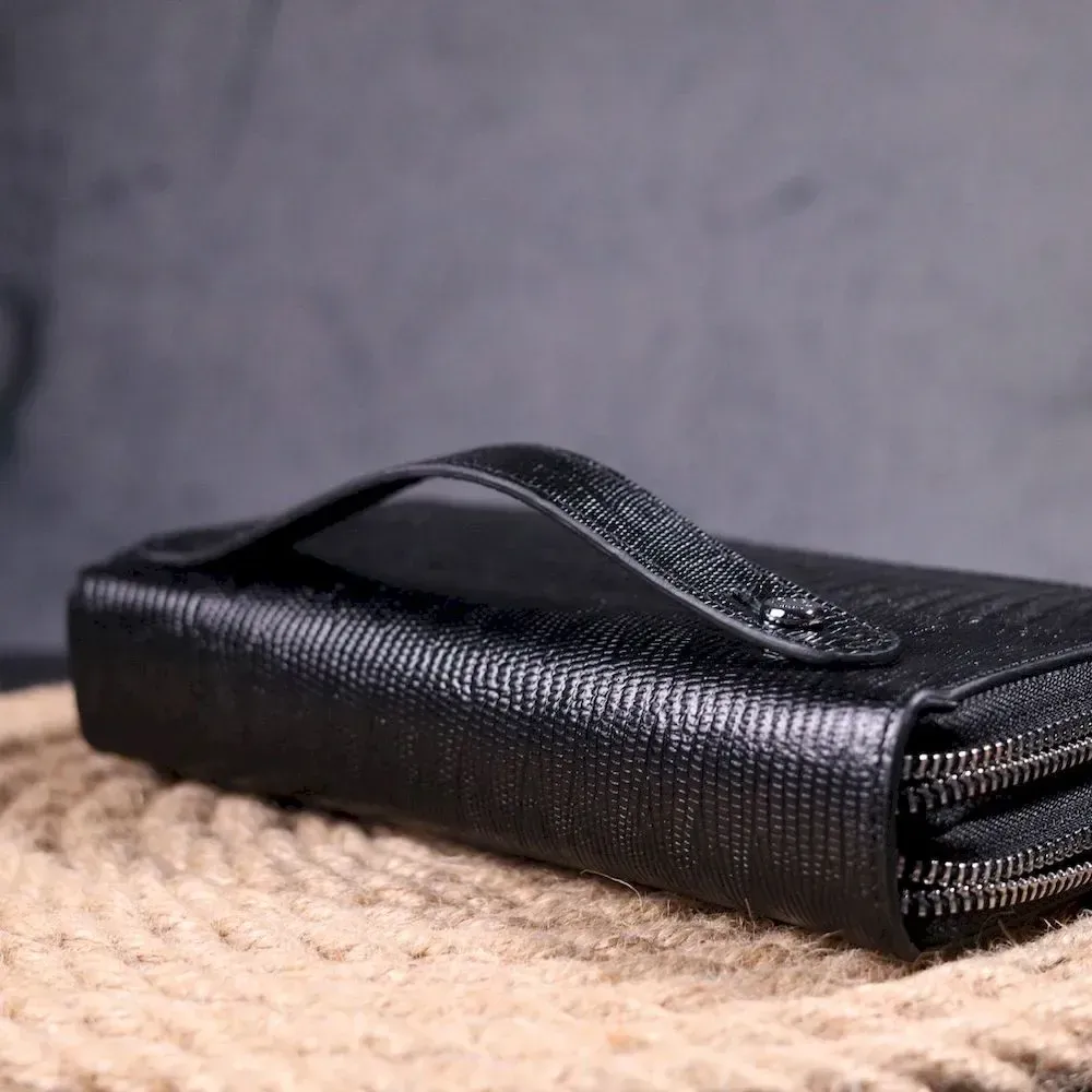 Оригінальний чоловічий клатч із фактурної натуральної шкіри KARYA 21312 Чорний
