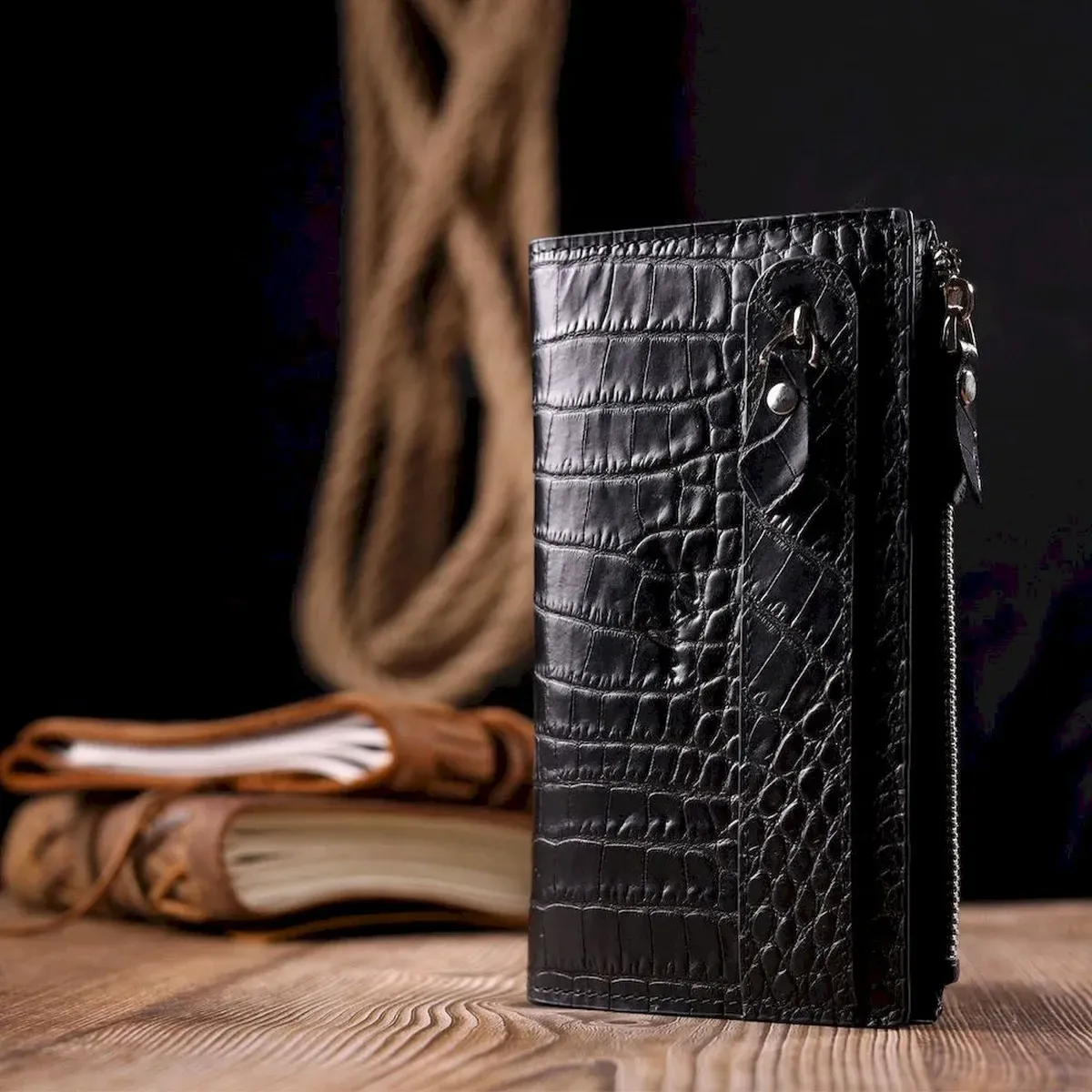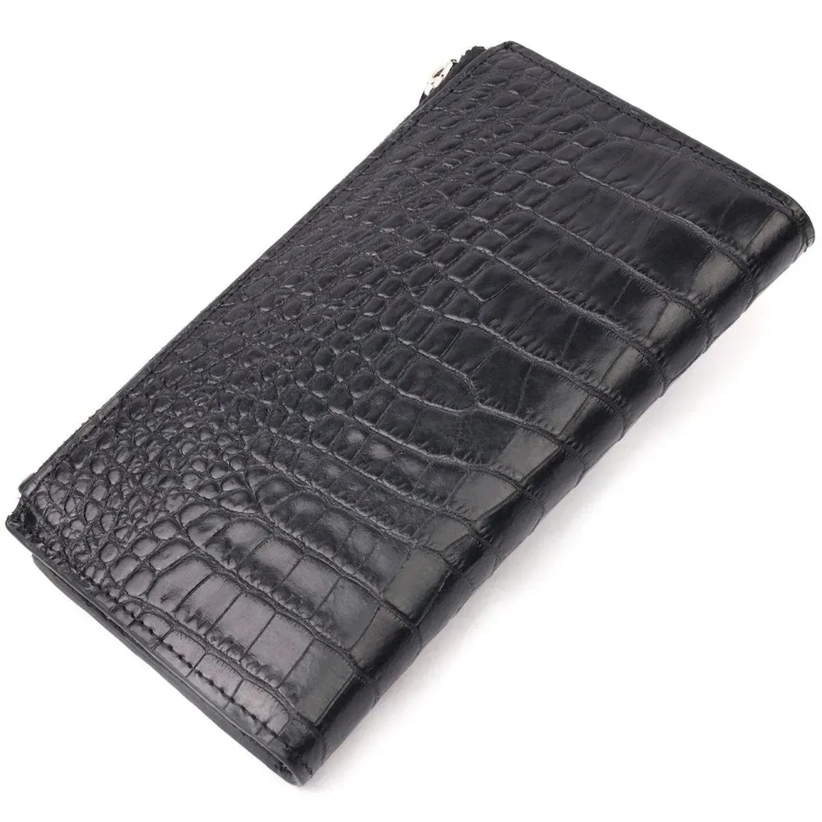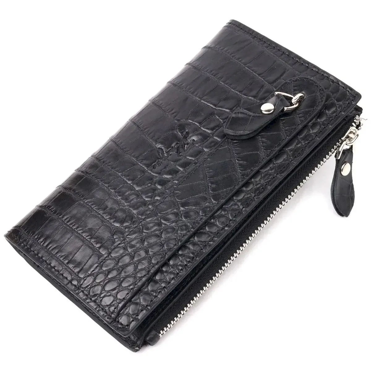 Оригінальний складний гаманець з натуральної шкіри з тисненням під крокодила KARYA 21128 Чорний