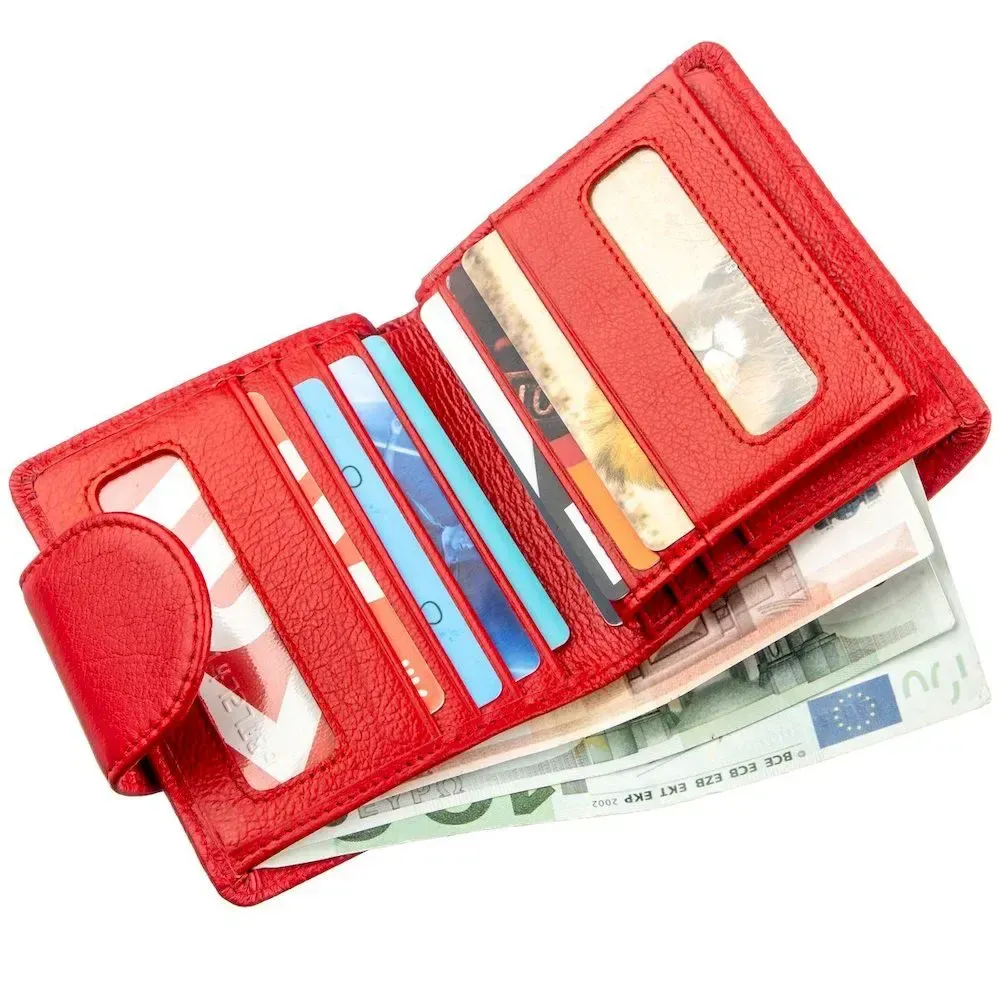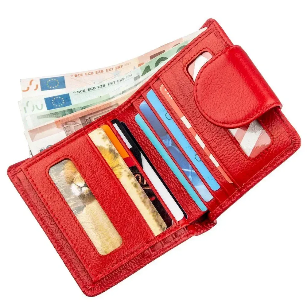 - 9 відділень для карт. Чудовий жіночий гаманець високої якості. Виконаний з добротної висококласної натуральної шкіри з відмінними властивостями та характеристиками. Має яскравий експресивний червоний колір, який, без сумніву, підкреслить чудовий смак і почуття стилю своєї господині. Дизайн виробу досить витриманий та суворий. Дана модель має дуже функціональне та практичне наповнення. Усередині розташовуються різні відділення на всю довжину, в тому числі і на блискавці, безліч кишень для кредитних та візитних карток, а також прозоре відділення для фотографій коханої людини. На тильній стороні знаходиться монетниця. Запакований гаманець у щільну картонну коробку.