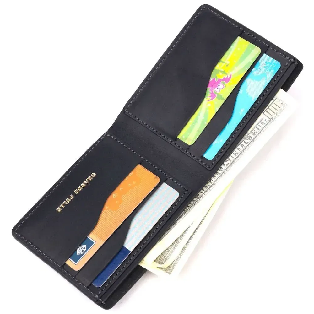 Відмінний шкіряний гаманець без застібки Слава ЗСУ GRANDE PELLE 16754 Чорний