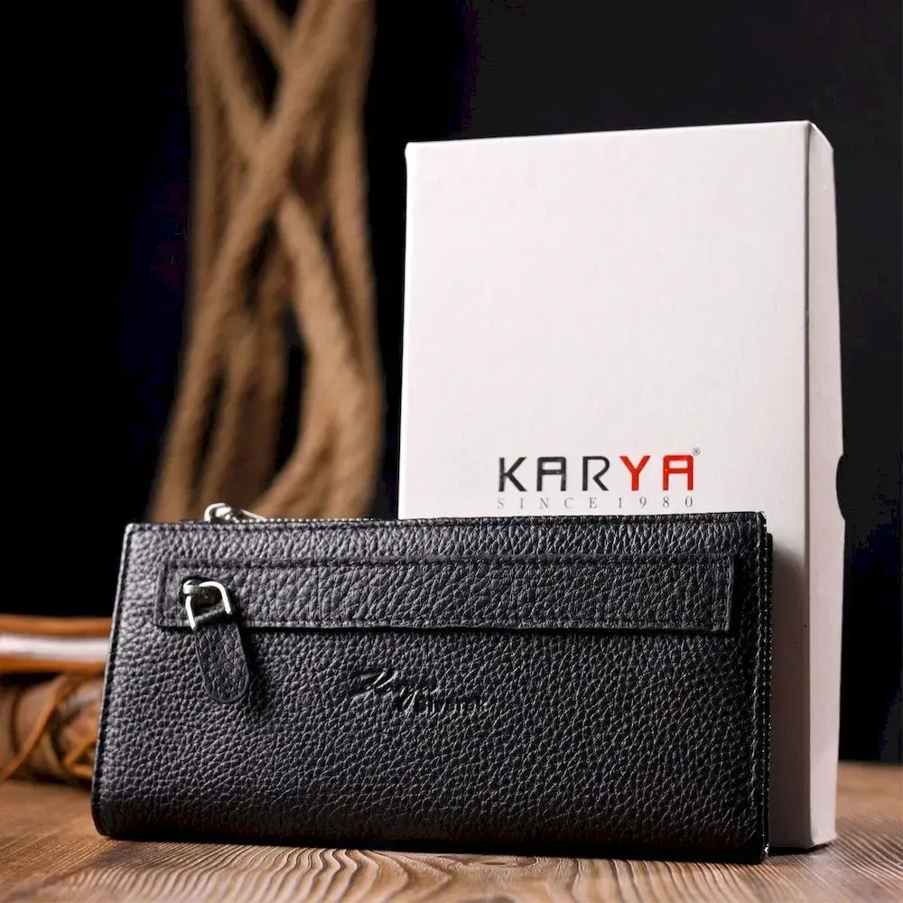 Відмінний складаний гаманець з натуральної шкіри KARYA 21132 Чорний