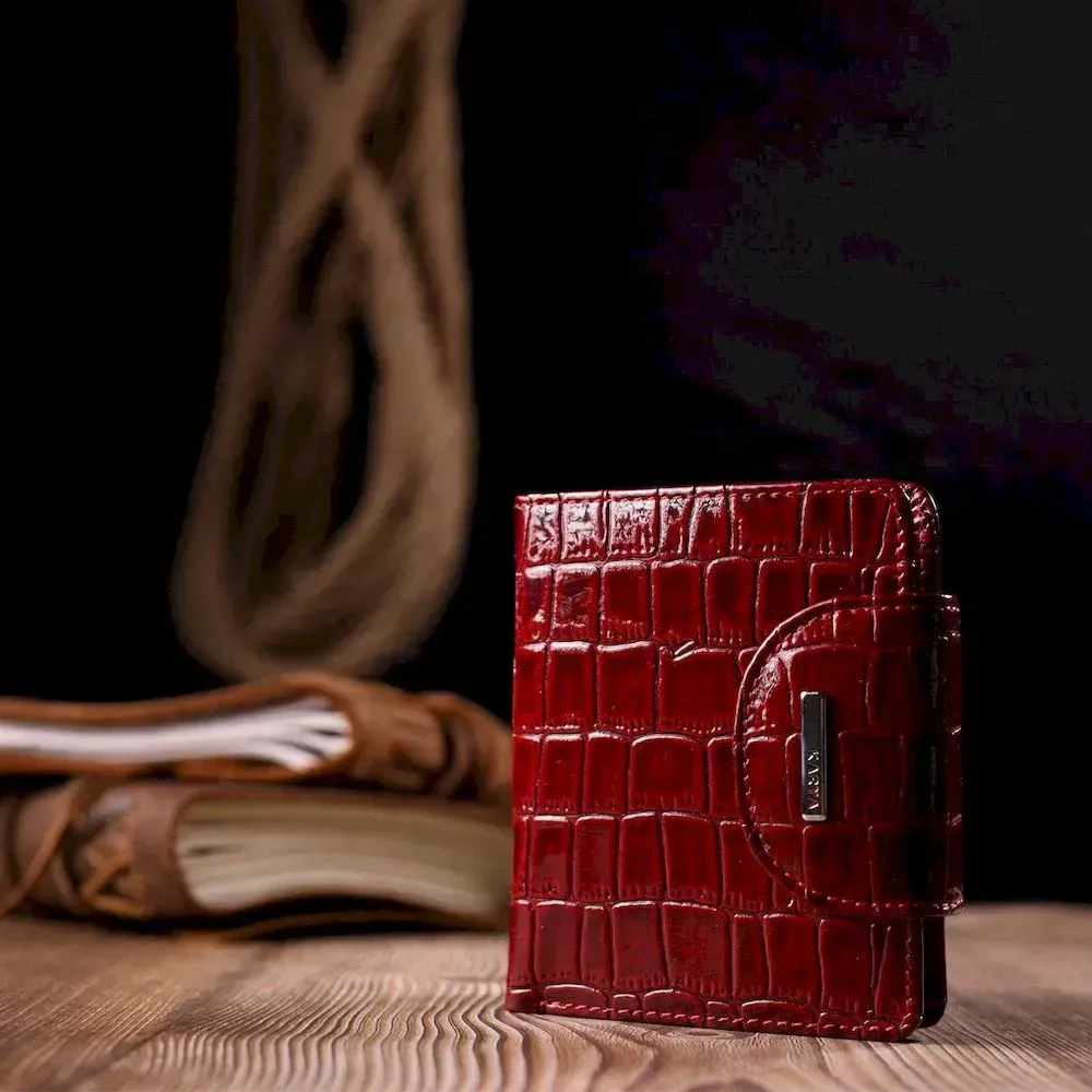 Відмінний жіночий гаманець з натуральної лакованої шкіри з тисненням під крокодила KARYA 21124
