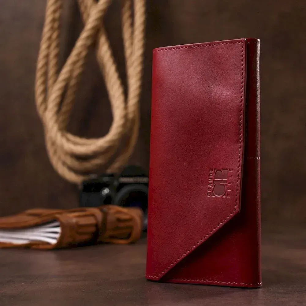 Чудовий шкіряний жіночий гаманець Grande Pelle 11576 Бордовий