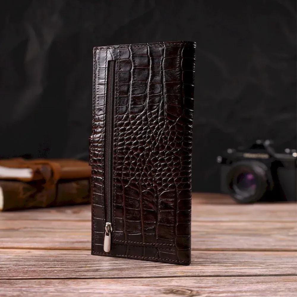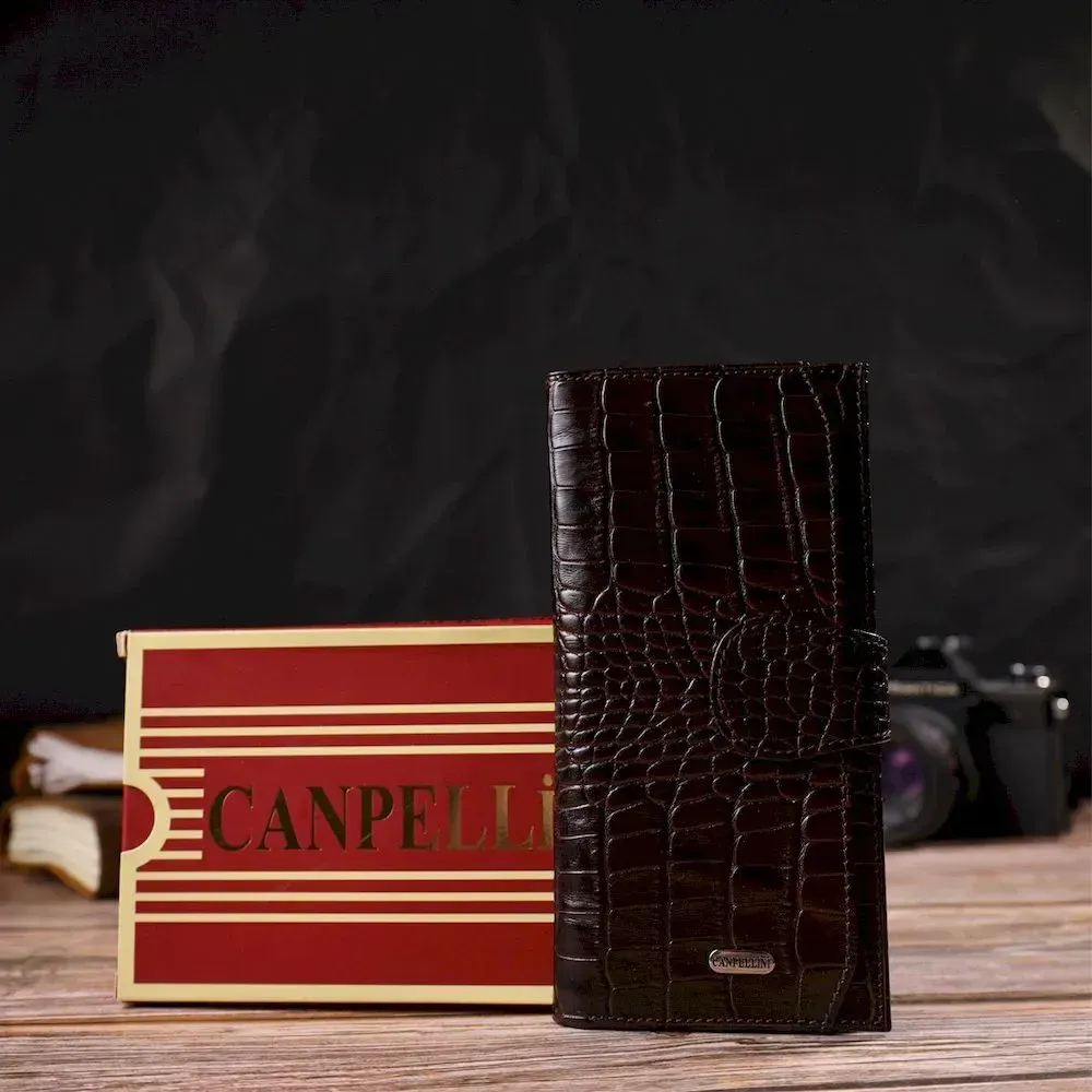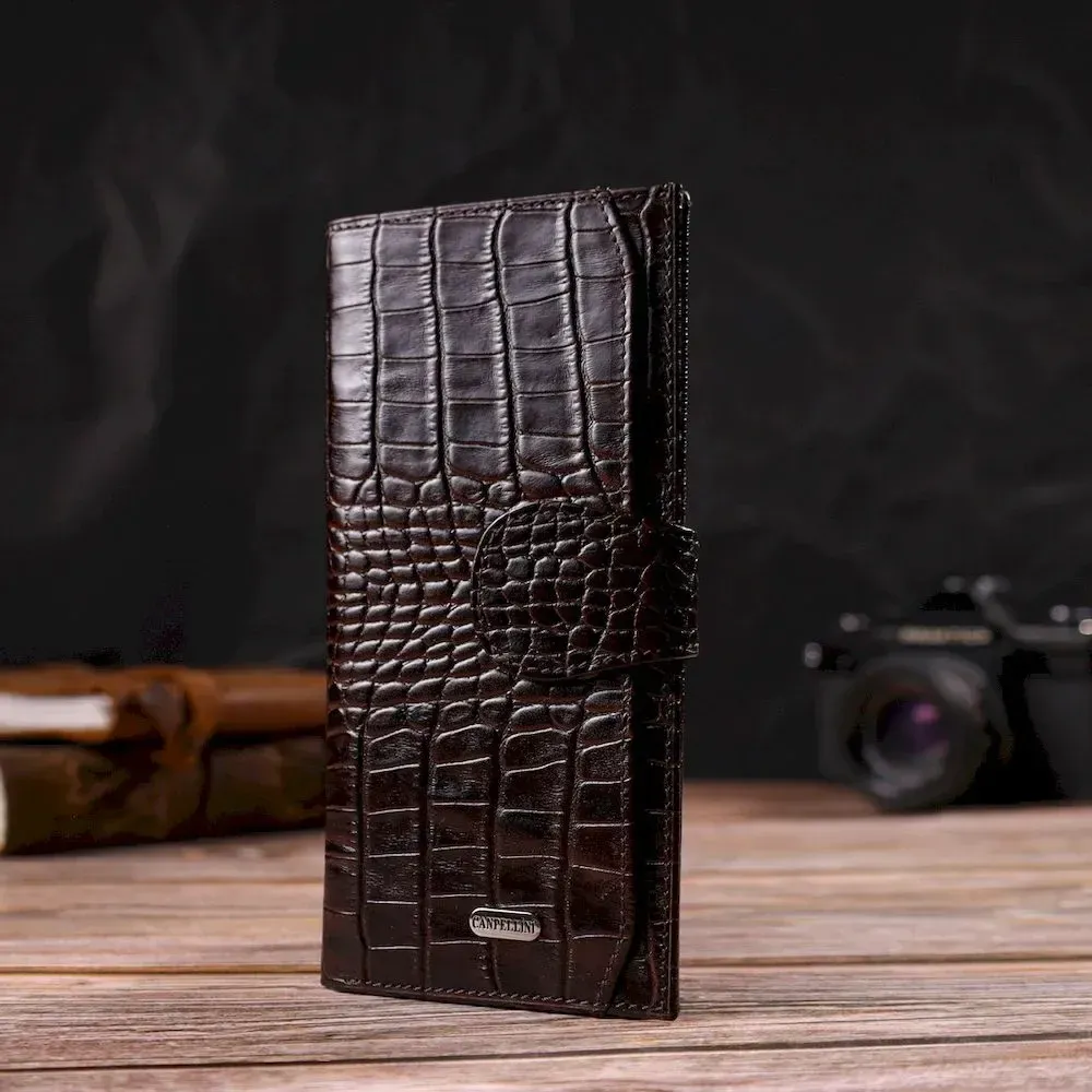 Відмінний купюрник для чоловіків з натуральної шкіри з тисненням під крокодила CANPELLINI 21917 Коричневий