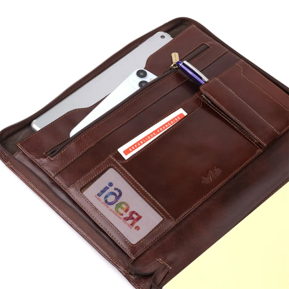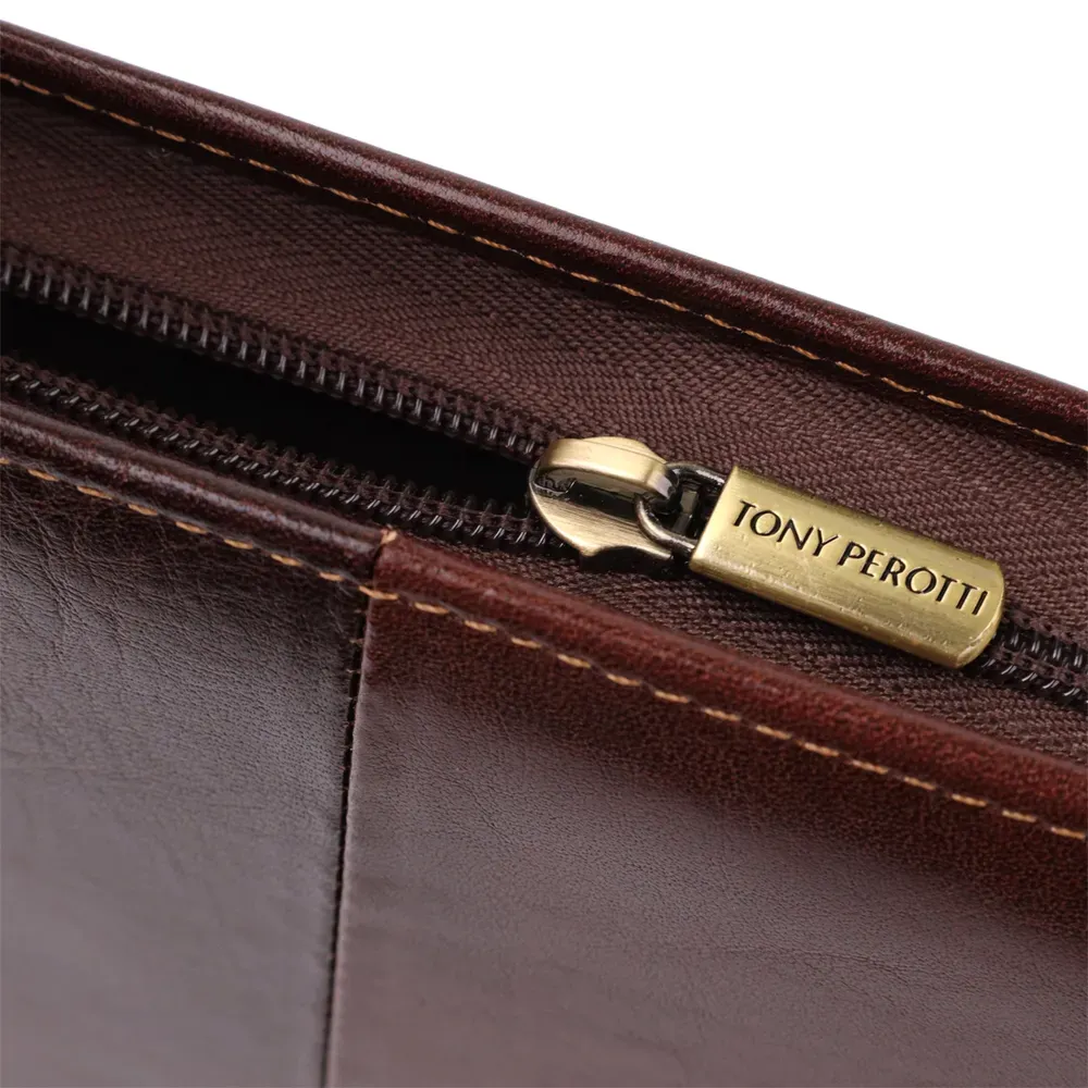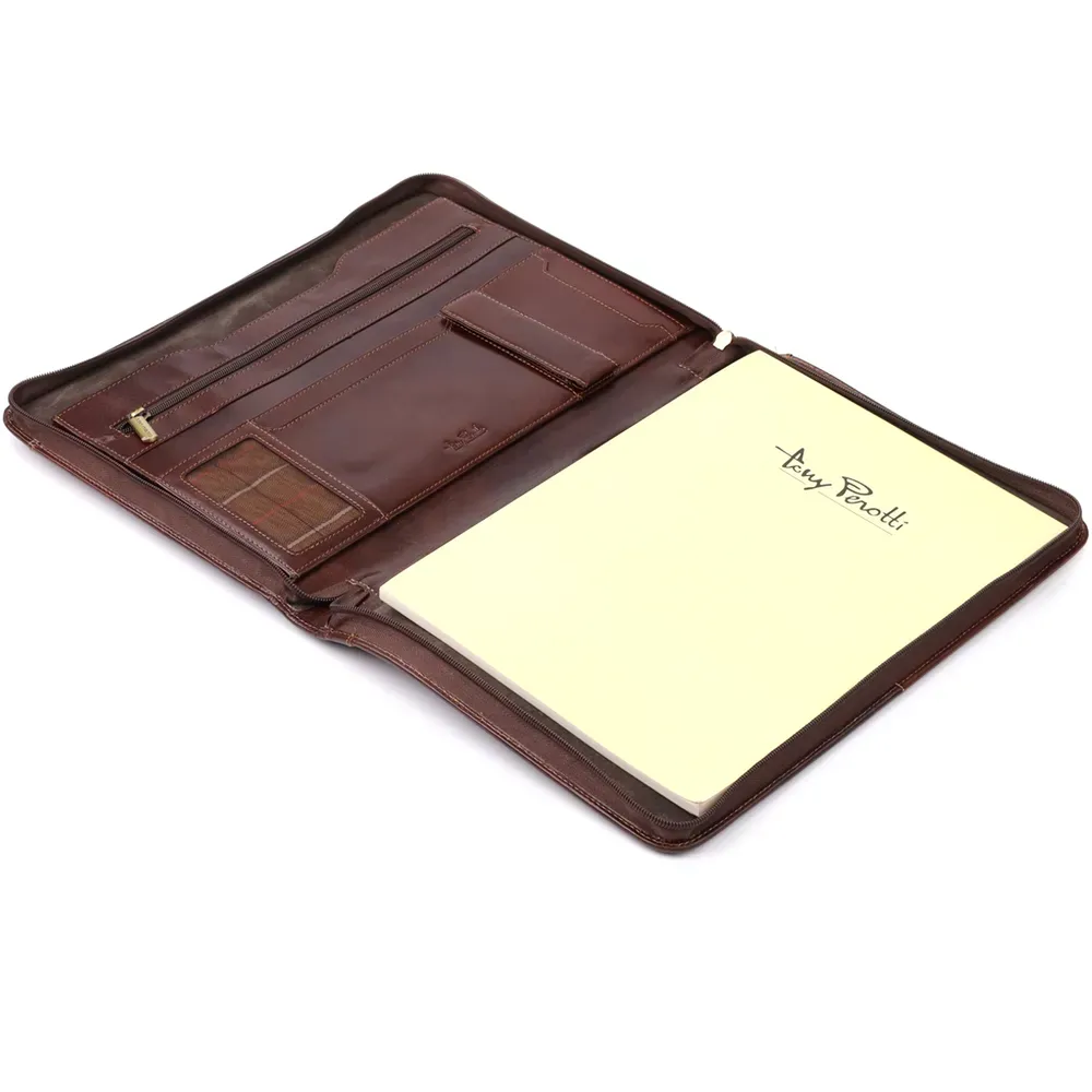 Елегантна шкіряна папка з блокнотом від італійського бренду Tony Perotti – стильне та функціональне рішення для роботи та ділових зустрічей. Виріб виконаний з натуральної гладкої шкіри, оснащений продуманими внутрішніми відділеннями для зберігання документів, ручок та карток, а змінний блокнот робить аксесуар універсальним та практичним. Лаконічний дизайн, тиснення бренду та італійська якість підкреслюють оригінальність та статус власника, а також роблять папку чудовим подарунком.