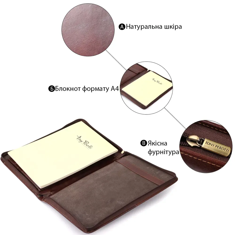 Папка з блокнотом із гладкої натуральної шкіри Tony Perotti 20849_1 (1278L moro) Коричнева