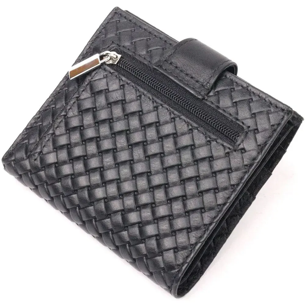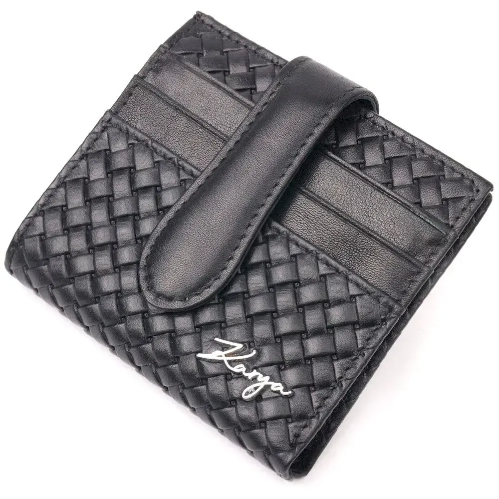 Плетений жіночий гаманець з натуральної шкіри KARYA 20954 Чорний