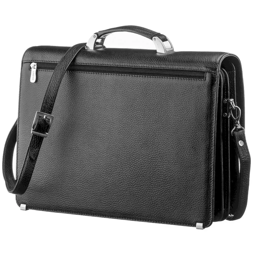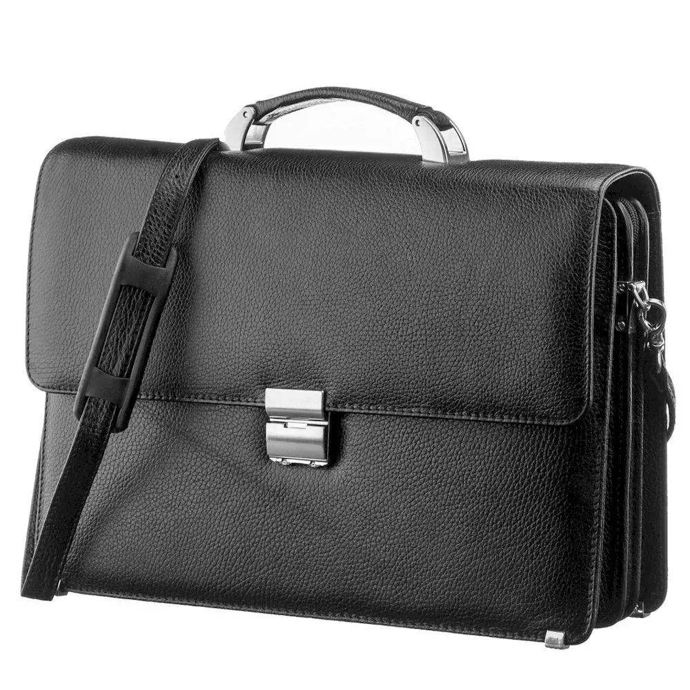 Представницький чоловічий портфель преміум класу з товстої шкіри, що дає моделі високу стійкість до зношування та подряпин. Має якісну металеву клямку на кодовому замку. Дуже міцна та зручна ручка, яка чудово сидить у руці. Легко вміщує папки формату А4, потрібний варіант, щоб підкреслити ваш статус. Підкладка моделі зроблена із замші. Чорний колір виробу дуже універсальний і підійде будь-якого дня. Знизу, ніж зношувалися краю, створено металеві вставки. Якщо ви виберете цю модель на подарунок, ви однозначно не помилитеся. У комплекті йде фірмовий тканинний мішок.
