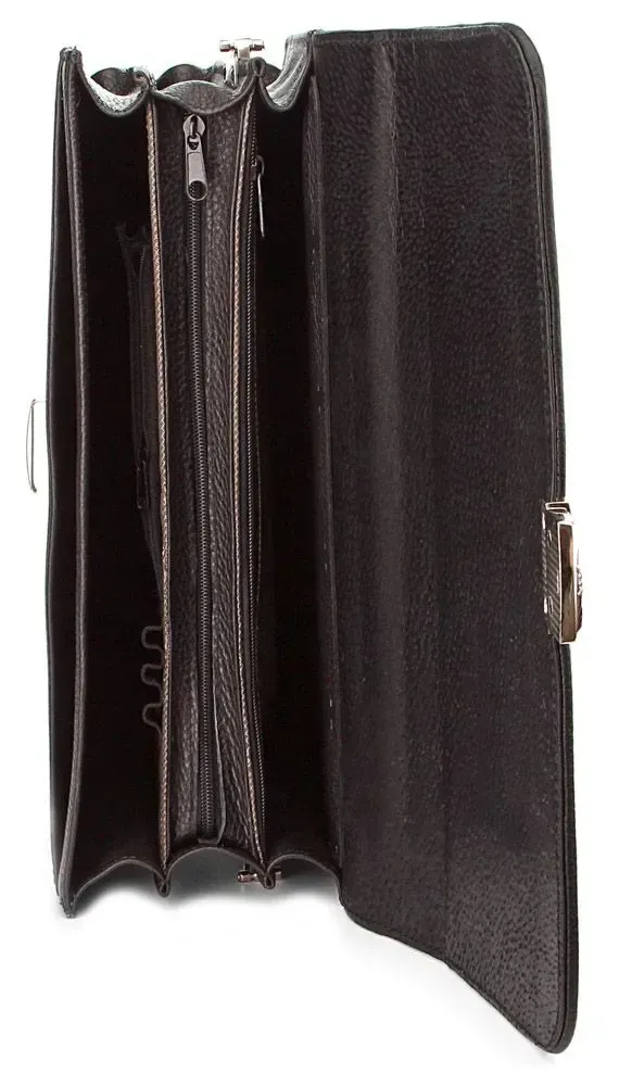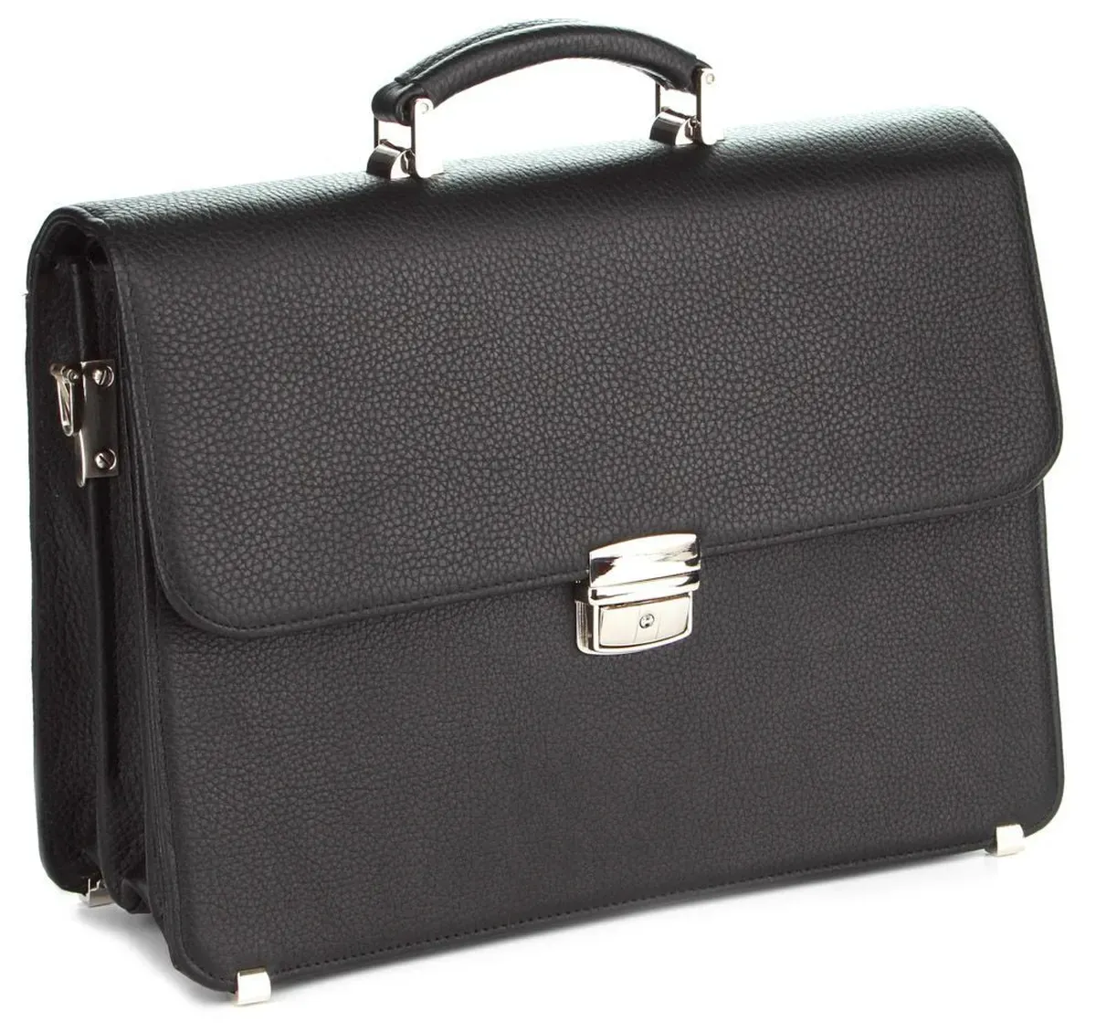 При необходимости защелка на портфеле закрывается на ключ, который идет в комплекте. Такой стильный кожаный аксессуар станет превосходным подарком современному мужчине, который предпочитает деловой стиль одежды.
