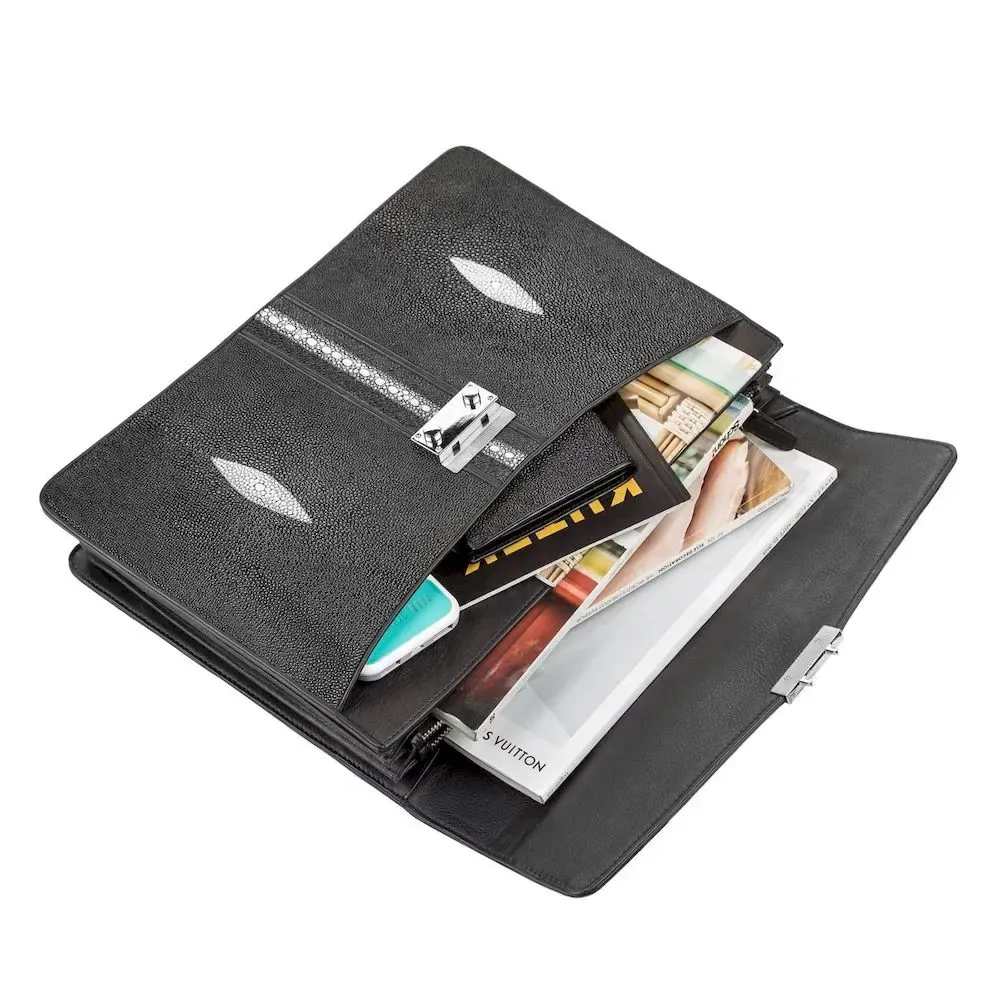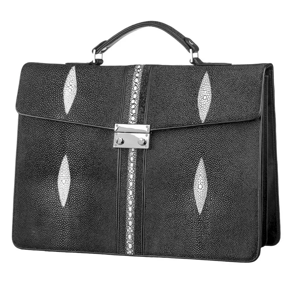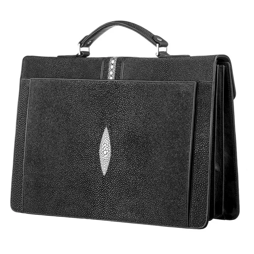 Портфель STINGRAY LEATHER 18114 із натуральної шкіри морського ската Чорний