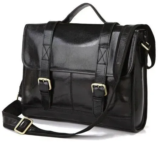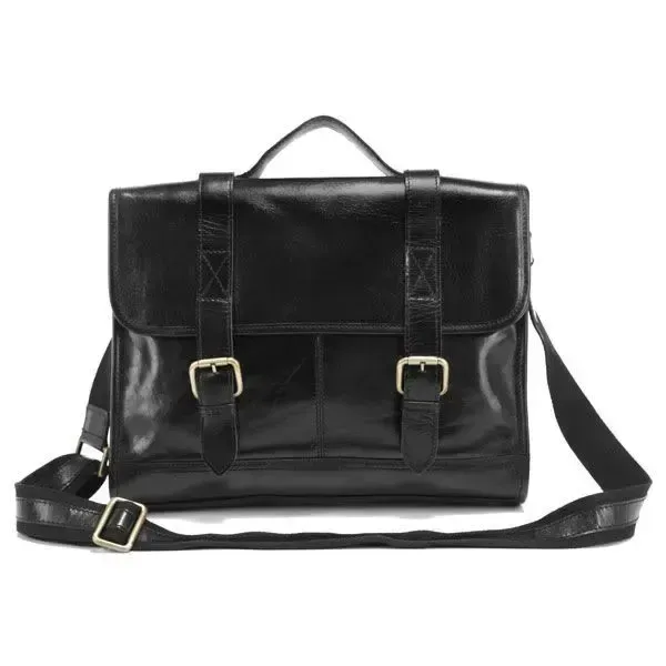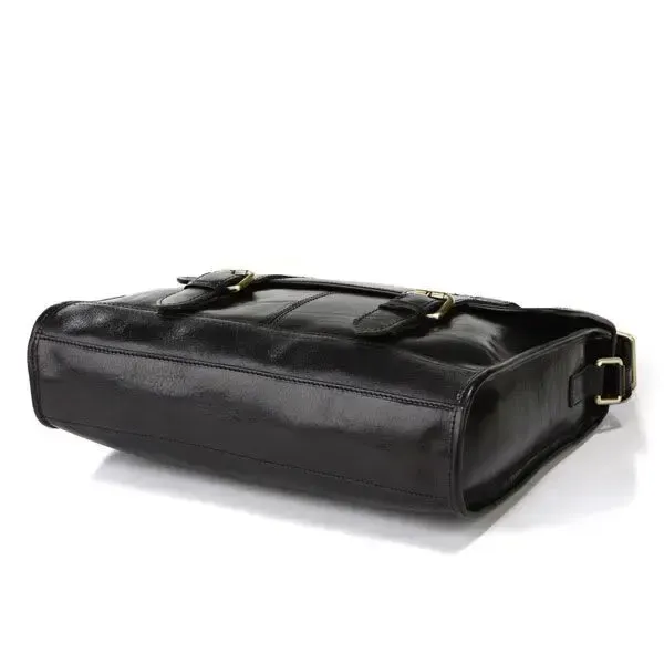 Вишуканий шкіряний портфель чорного кольору з якісної натуральної шкіри. Портфель виконаний у класичному стилі, але це не завадить носити його зі стилем одягу «Кежуел». Дану модель зручно носити через плече, але незважаючи на це дизайнери оснастили його ручкою, у випадках коли треба взяти портфель в руку це дуже зручно. Особливості виробу: - клапан закривається за допомогою магнітних кнопок;