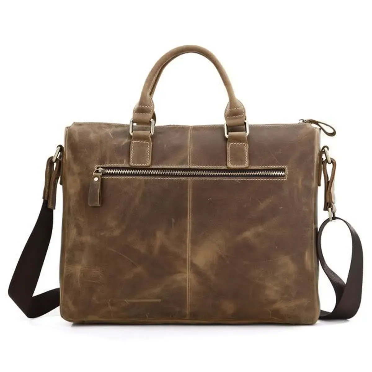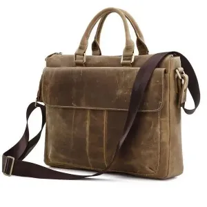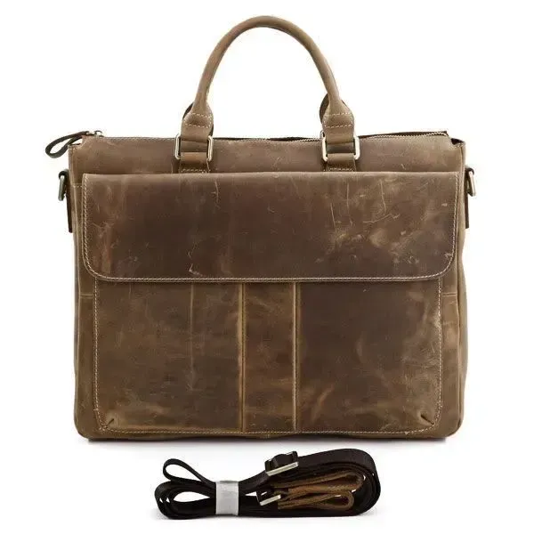 Унікальна сумка-портфель їх якісної вінтажної шкіри коричневого кольору. Сумку можна носити як у руці так і через плече, за допомогою текстильного плечового ременя коричневого кольору.