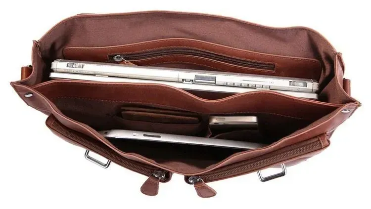 Елітний шкіряний портфель, має приємний коричневий колір. Виріб чудово поєднується як із класичним стилем, так і зі стилем одягу кежуел. Портфель можна носити через плече та за допомогою зручної шкіряної ручки.