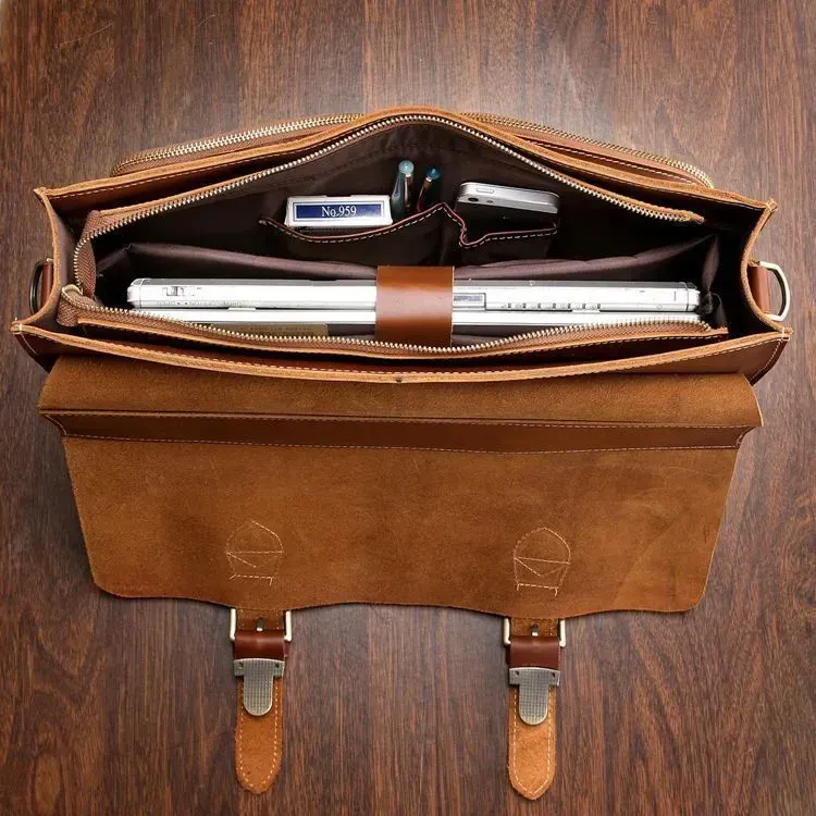 Ексклюзивний шкіряний чоловічий портфель з безліччю кишень та відділень. Аксесуар надзвичайно зручний при носінні і при цьому дуже надійний та якісний. У такий портфель помістяться практично все, що потрібно сучасній, діловій людині.