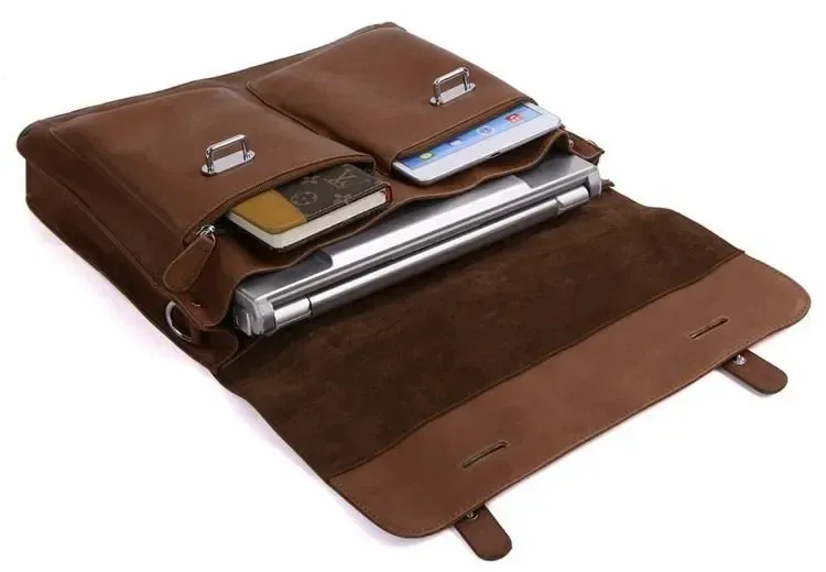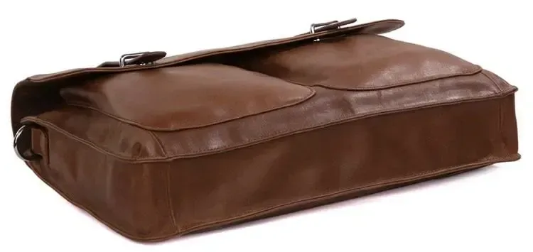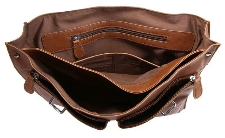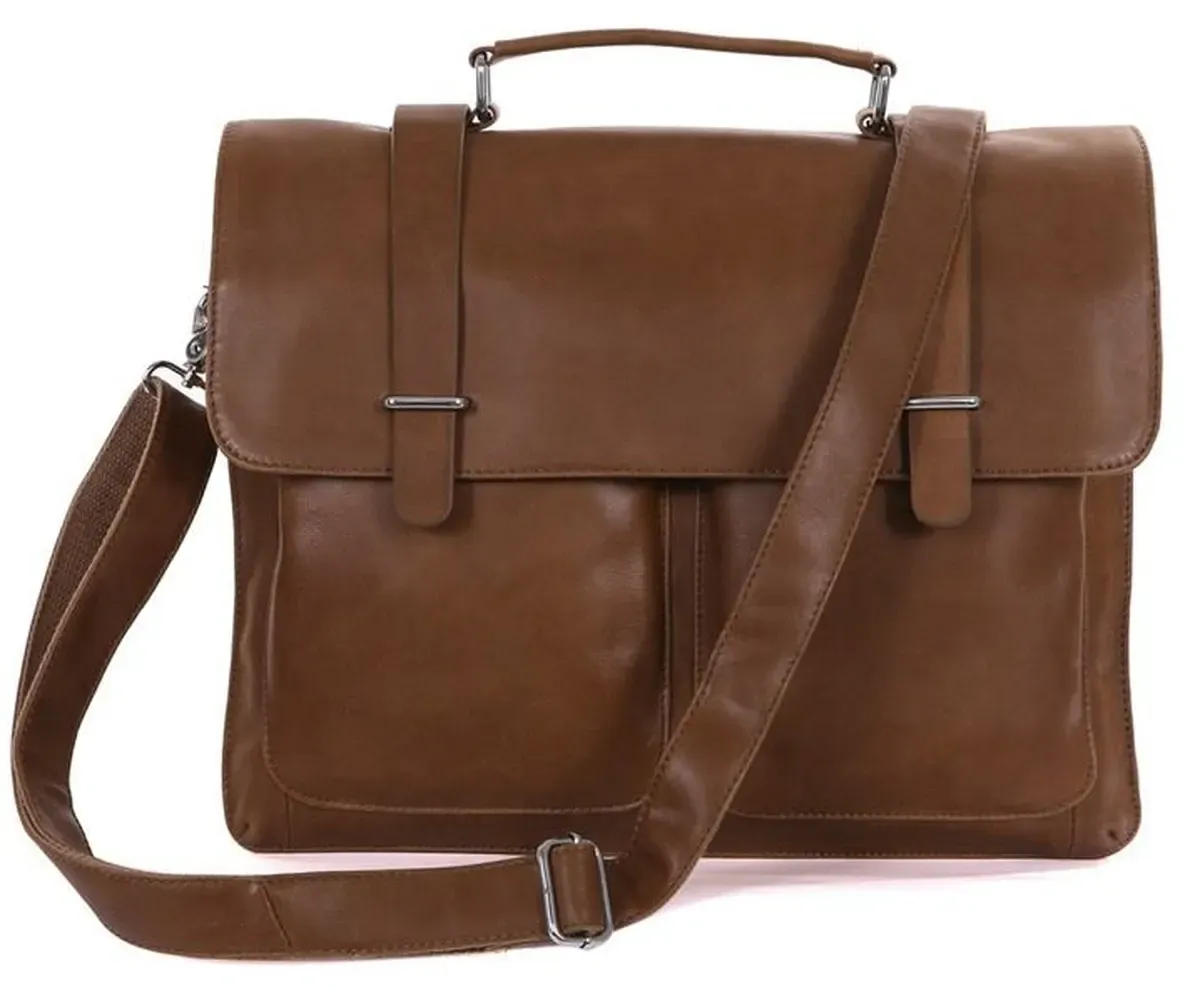 Стильний чоловічий портфель з натуральної шкіри коричневого кольору. Аксесуар можна носити в руці за допомогою зручної шкіряної ручки, а також через плече (у комплекті плечовий ремінь). Портфель виглядає презентабельно і може бути подарунком до Дня Народження.
