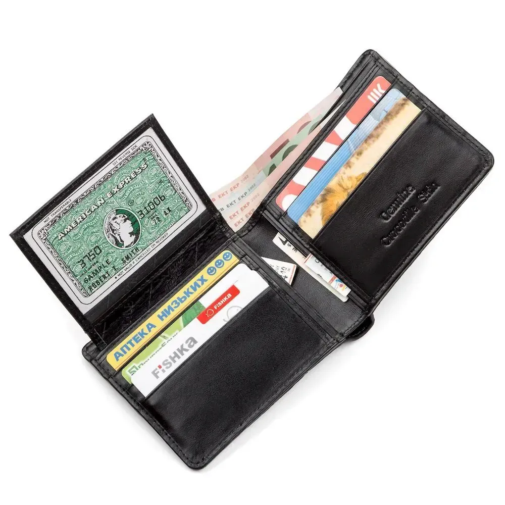 Портмоне CROCODILE LEATHER 18045 із натуральної шкіри крокодила Чорне