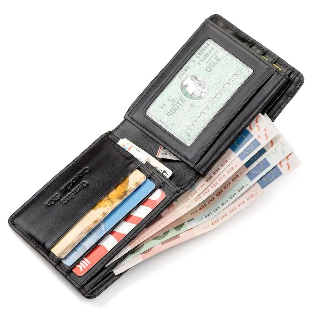 Портмоне з натуральної шкіри крокодила. Вироби зі шкіри крокодила завжди вважалися великою розкішшю, оскільки у світі не так багато компаній, які займаються виробленням такої шкіри, оскільки цей процес дійсно надзвичайно трудомісткий.
