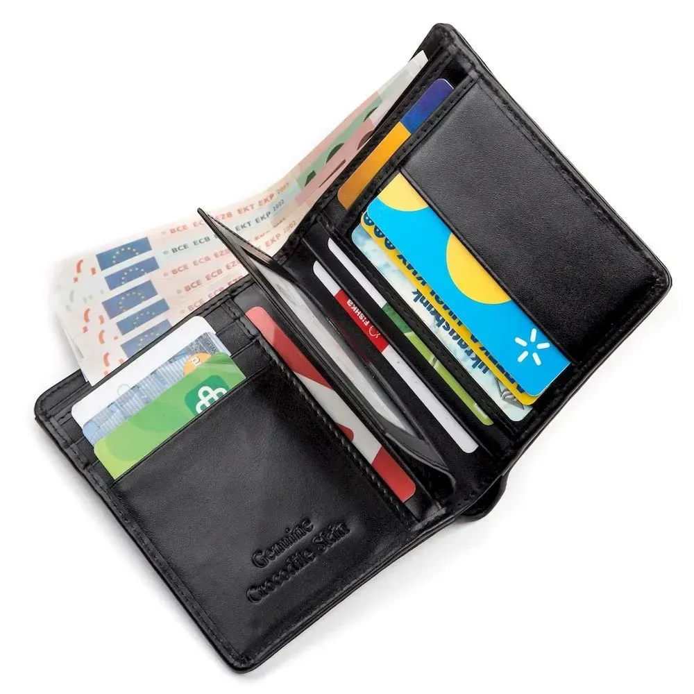 Вертикальне портмоне з натуральної шкіри крокодила. Вироби зі шкіри крокодила завжди вважалися великою розкішшю, так як у світі не так багато компаній, які займаються виробленням такої шкіри, оскільки цей процес справді надзвичайно трудомісткий.