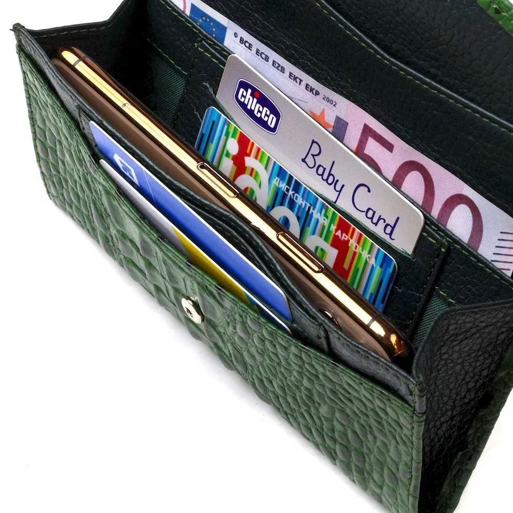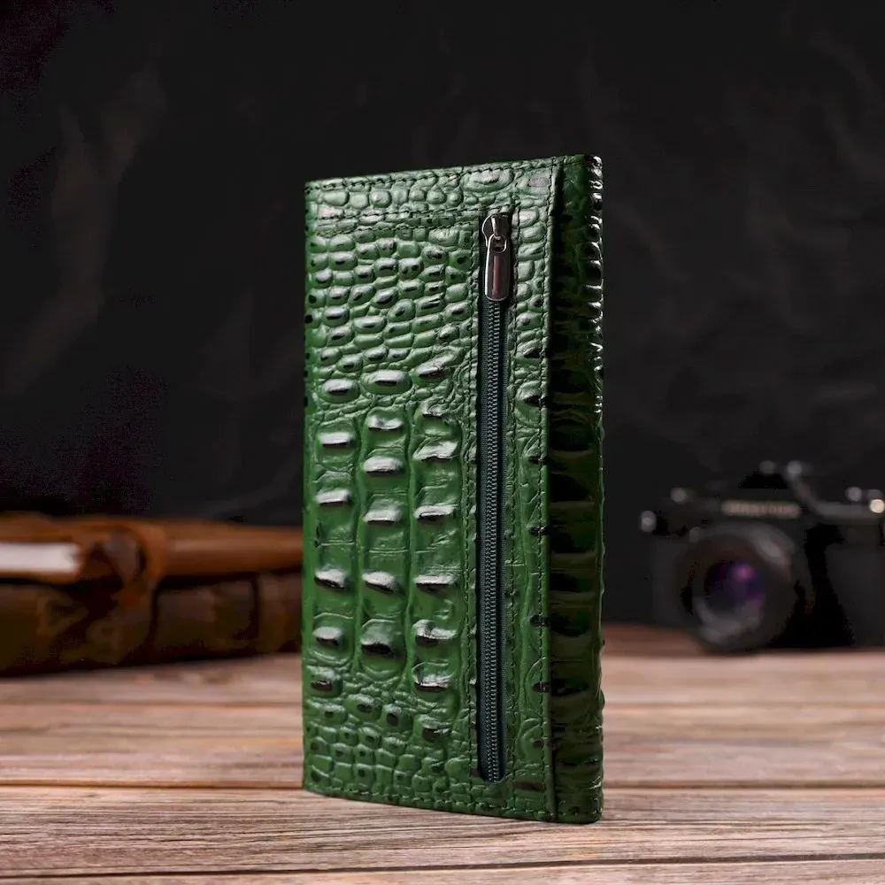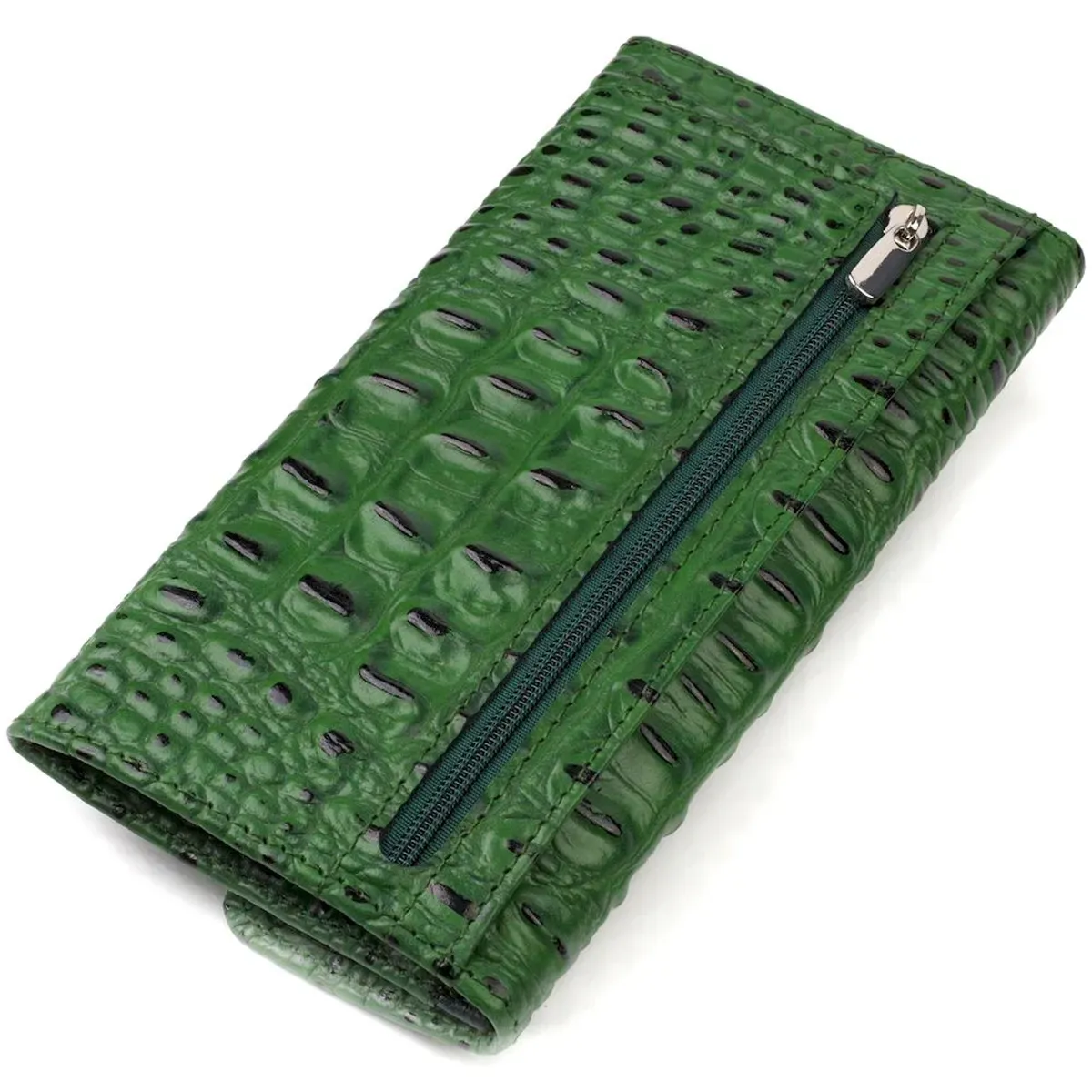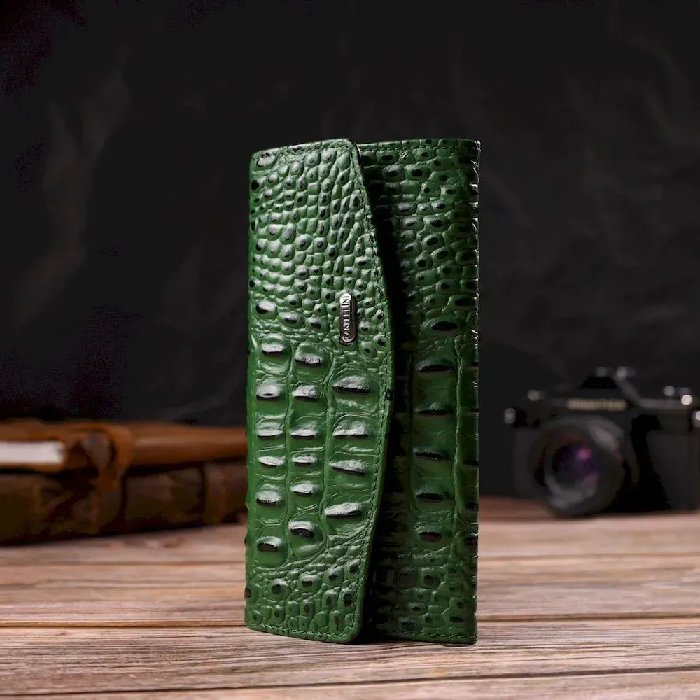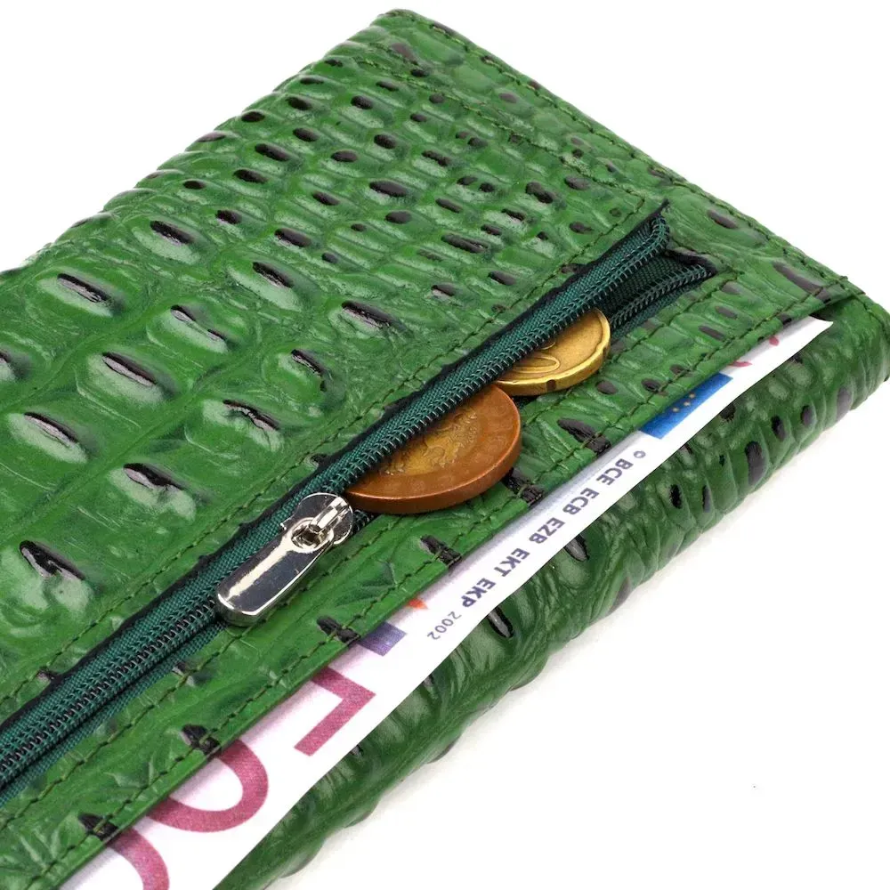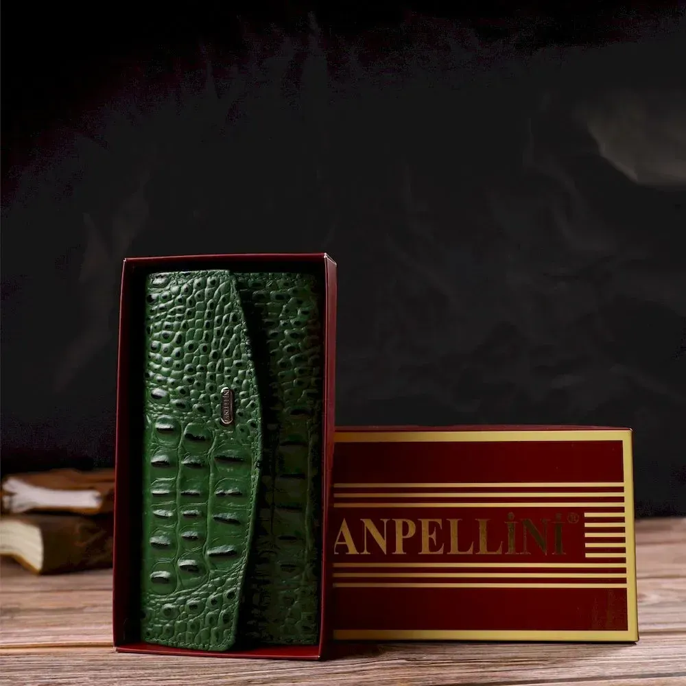 Портмоне для жінок з натуральної шкіри з тисненням під крокодила CANPELLINI 21701 Зелене