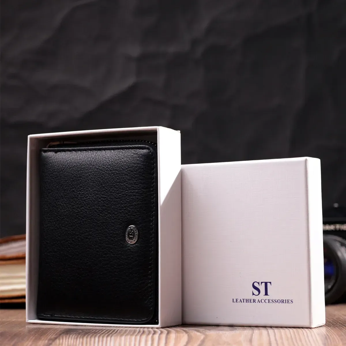 Портмоне для жінок на блискавці в класичному кольорі з натуральної шкіри ST Leather 19488 Чорний
