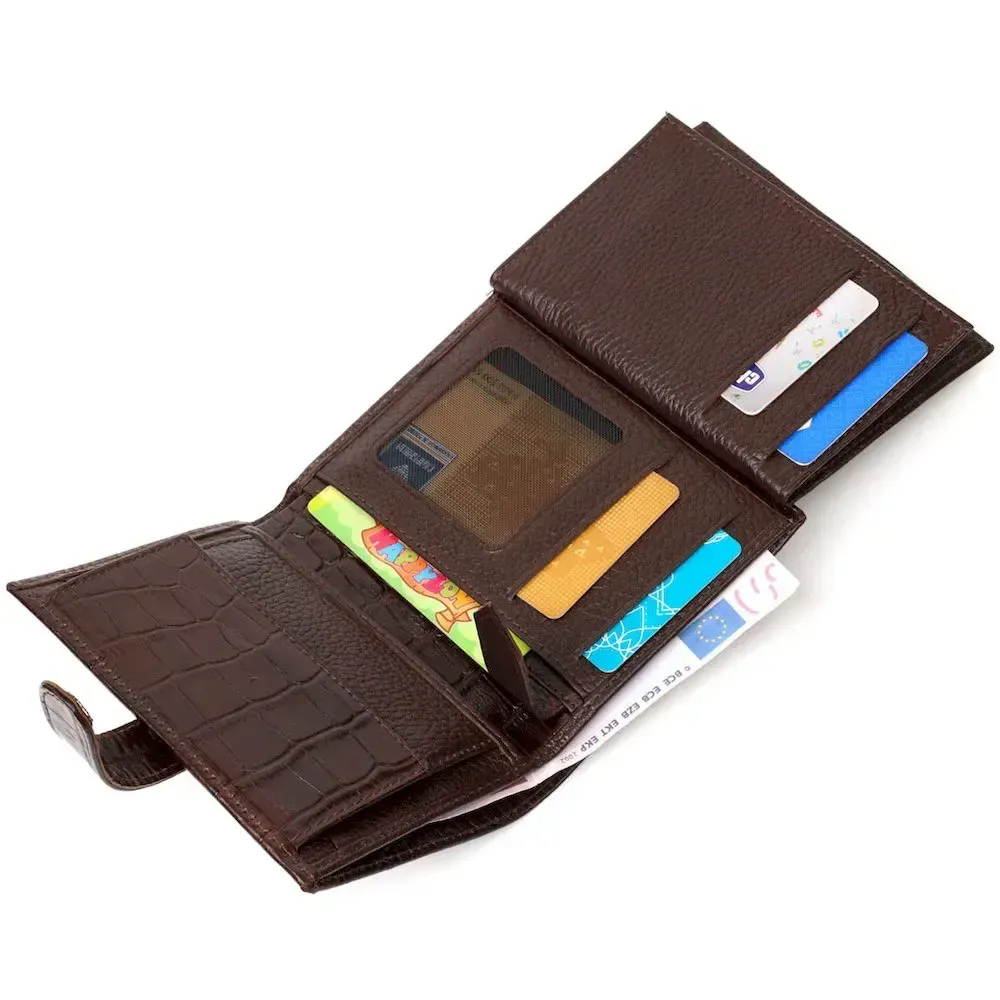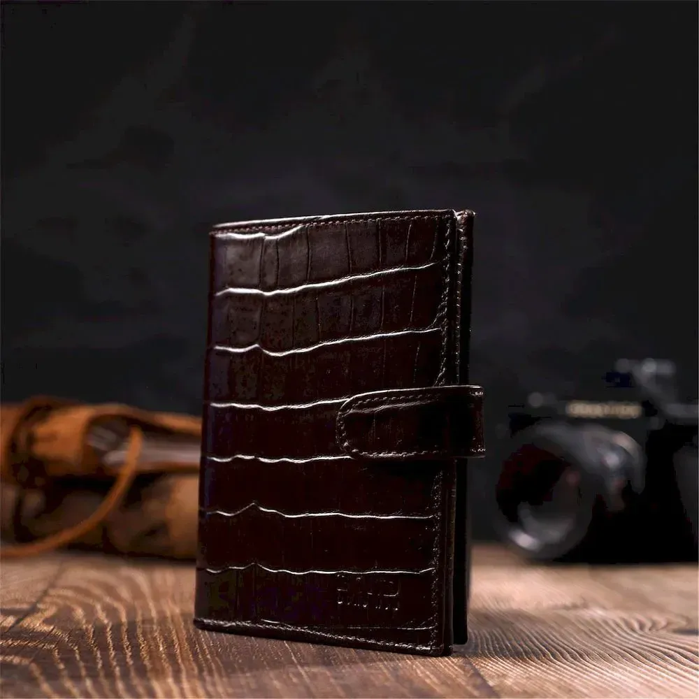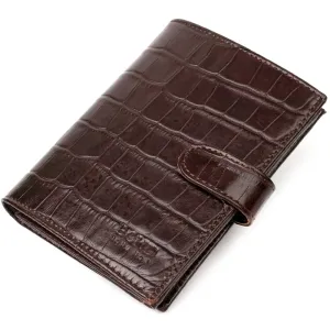 Портмоне фактурне для чоловіків з натуральної шкіри з тисненням під крокодила BOND 22058 Коричневий