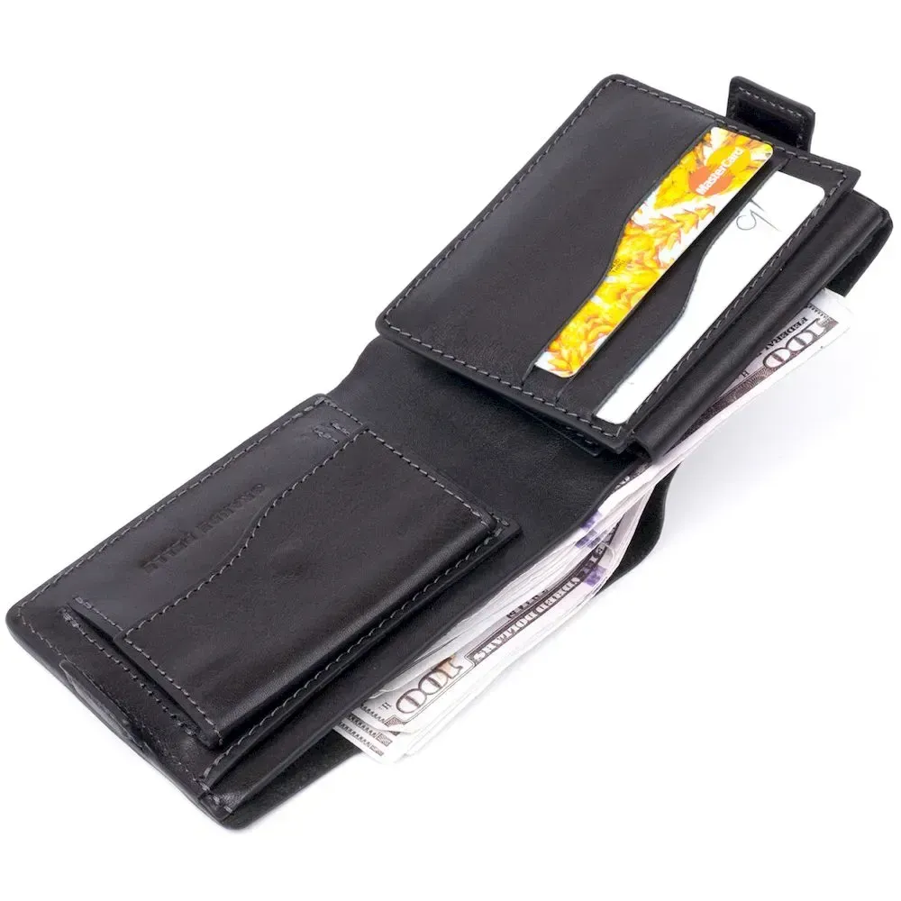 Портмоне горизонтальне Amico на магніті на два відділення GRANDE PELLE 11320 Чорне