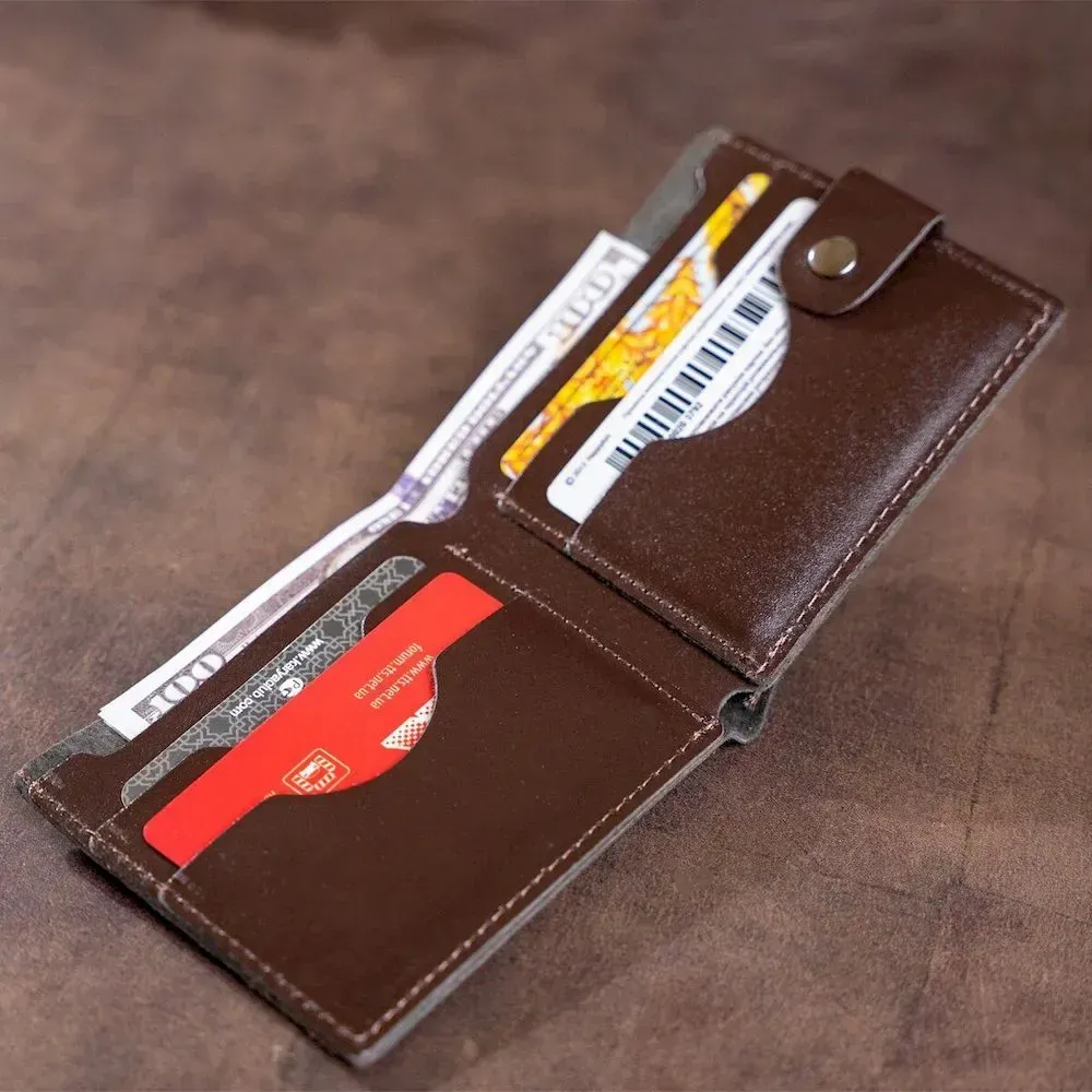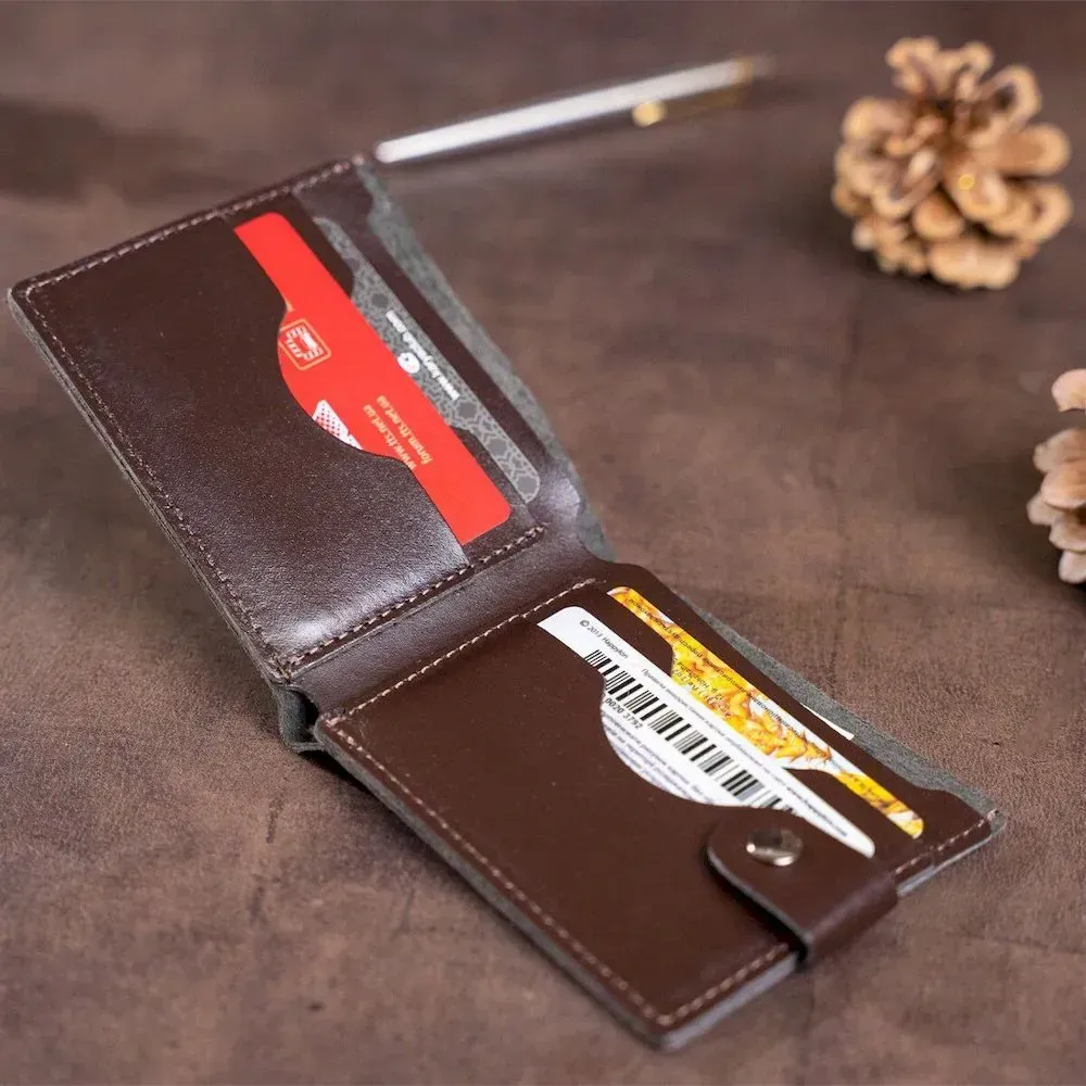 Шикарний чоловічий гаманець коричневого кольору. Аксесуар виконаний із товстої, високоякісної шкіри. На лицьовій стороні виробу (в її правому нижньому кутку) розташований тісний логотип компанії виробник «SHVIGEL». Гаманець акуратно прошитий міцною ниткою. Аксесуар стане чудовим подарунком для будь-якого чоловіка.