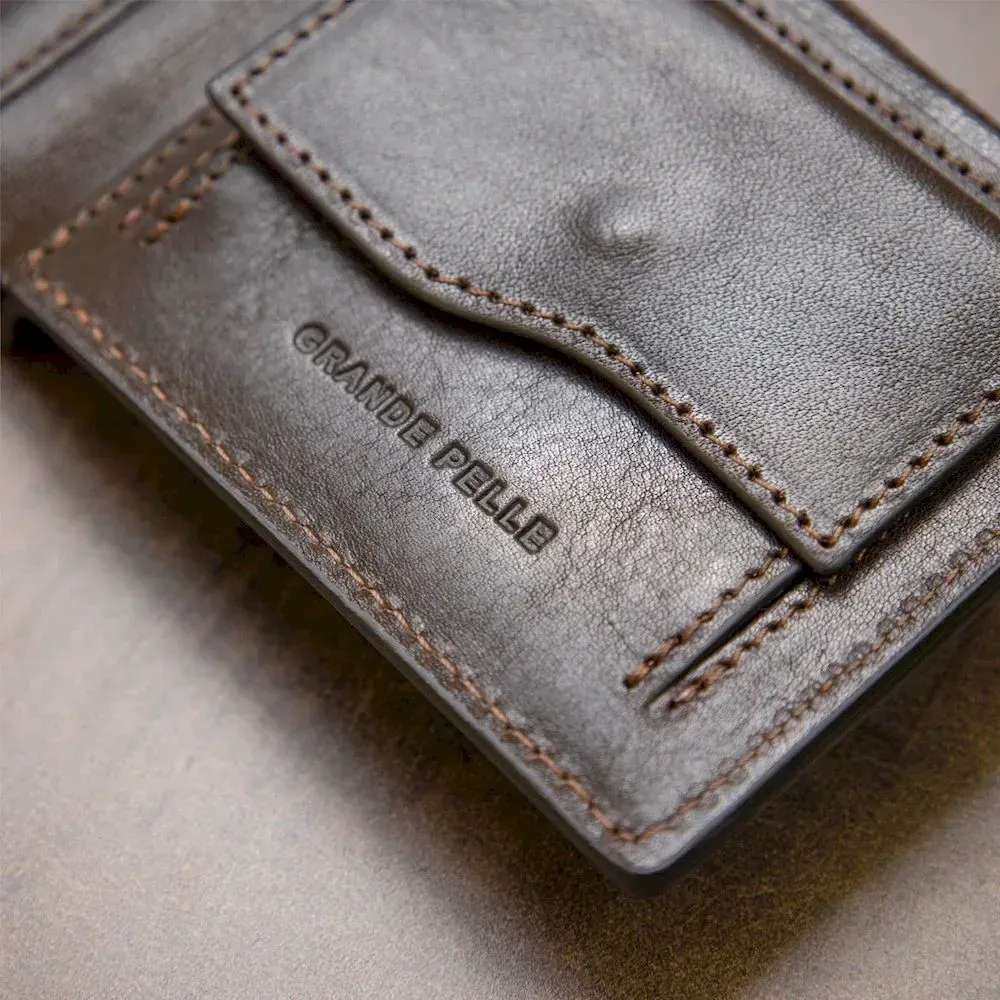 Портмоне з натуральної шкіри для чоловіків GRANDE PELLE 11463 Коричневий