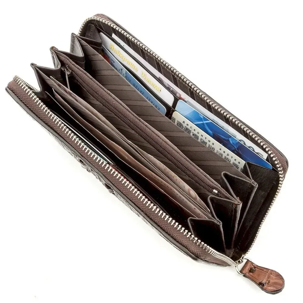 Портмоне чоловіче CROCODILE LEATHER 18587 з натуральної шкіри крокодила Коричневе