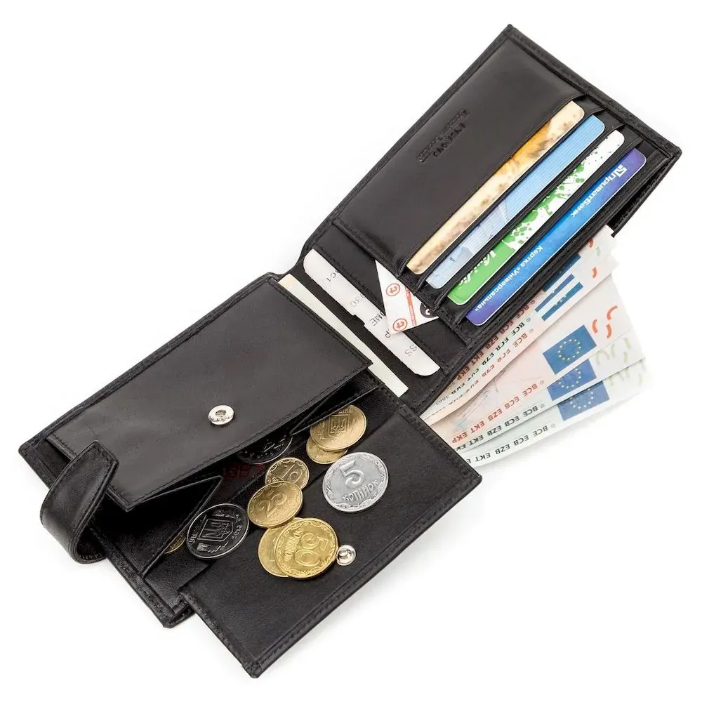 Надійний чоловічий гаманець, з натуральної гладкої шкіри. Своєю компактністю та презентабельним виглядом гаманець підкреслить приголомшливий стиль свого власника.