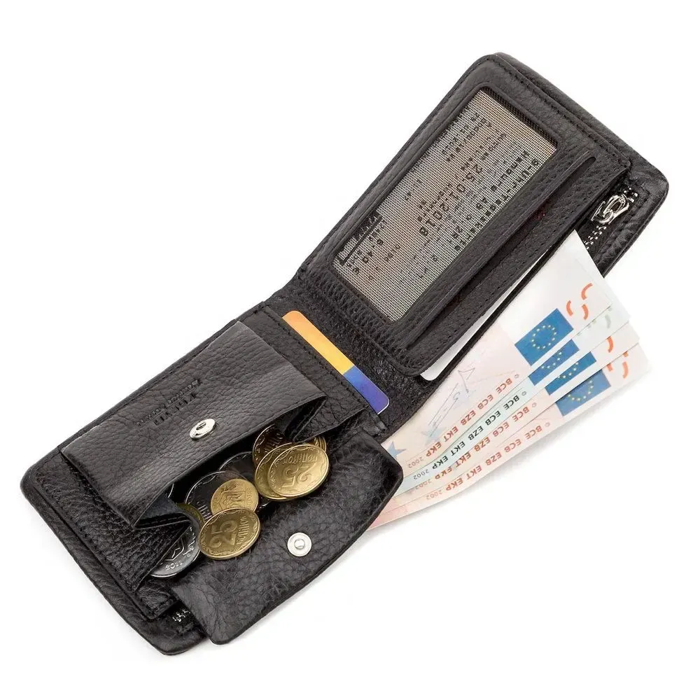 Чорне цікаве чоловіче портмоне, з натуральної зернистої шкіри. Дуже красивий і стильний аксесуар, який відмінно підійде як подарунок і не залишить байдужим жодного чоловіка.