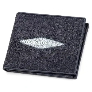 Відмінний гаманець з натуральної шкіри морського схилу, дуже стійкий до зношування, проколів, порізів, до розривів і навіть до вогню. Аксесуар обшитий гладкою натуральною шкірою під колір виробу. На лицьовій поверхні гаманця, у вигляді прикраси виробу розташований малюнок, біле вічко з більшими намистинами посередині. Гаманець зі шкіри ската - це оригінальний та практичний аксесуар, який стане незабутнім подарунком для будь-якого сучасного чоловіка.