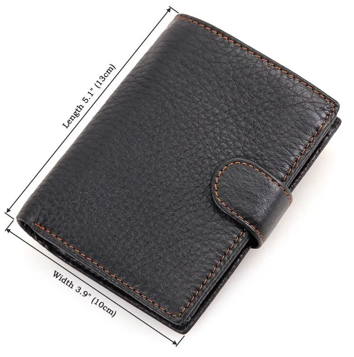 Оригінальний чоловічий гаманець чорного кольору. Аксесуар виконаний з натуральної високоякісної фактурної шкіри приємної на дотик. Гаманець акуратною прошитий світло-коричневою ниткою, що надає йому родзинки. Колір фурнітури: латунь. Виріб упакований у текстильний мішок пилу білого кольору.