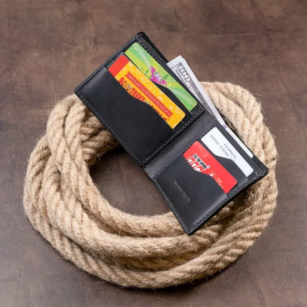 Модель у вінтажній шкірі з мінімальним дизайном. По краях аксесуар прошитий рівним рядком. Усередині – кілька осередків для карт та одне відділення для купюр. Ідеальний варіант для будь-якого чоловіка, який не любить громіздких аксесуарів. Незважаючи на свій невеликий розмір портмоне дуже дорого і солідно виглядає. Матова шкіра особливо популярна за власний ефект старовини. Згодом на такій шкірі з'являються подряпини та потертості, які додають їй особливого шарму. На лицьовій стороні аксесуара тиснення у вигляді логотипу бренду. Виріб виготовлено з урахуванням усіх модних тенденцій та побажань клієнтів. Популярна модель з нової колекції.