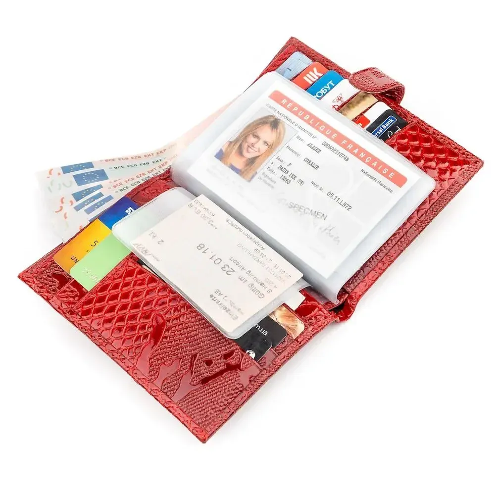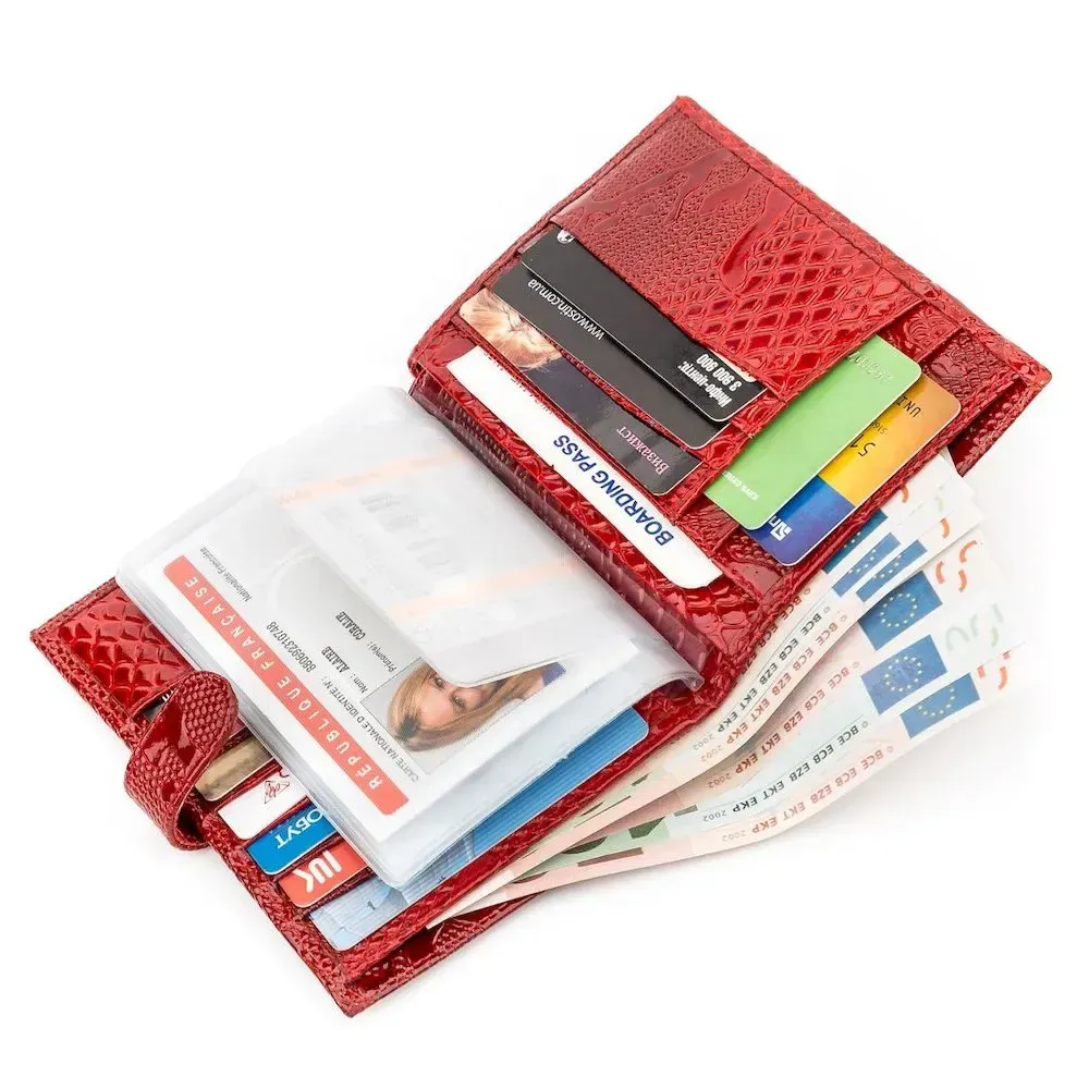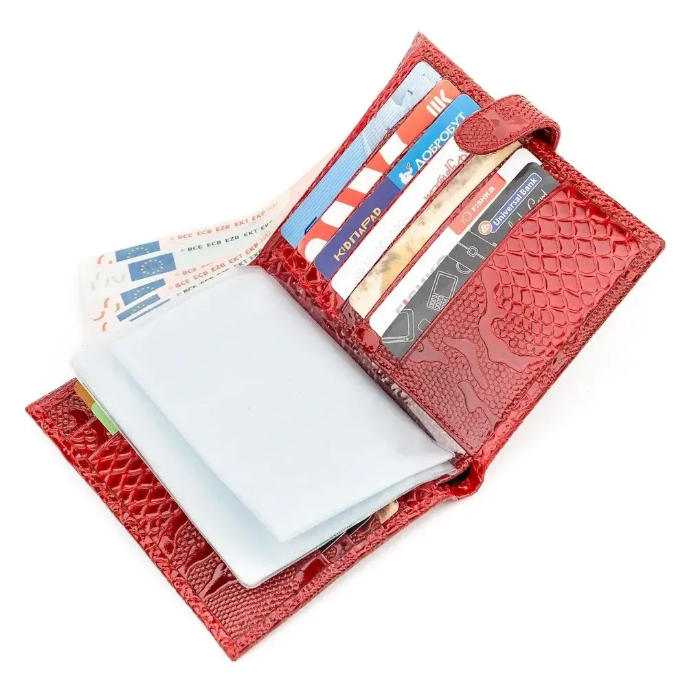 - гаманець упакований у фірмову коробочку.< /p> Місткий жіночий гаманець червоного кольору. Аксесуар виконаний із натуральної високоякісної фактурної шкіри під рептилію. Дуже акуратний та компактний аксесуар, який підійде жінці, яка цінує зручність та якість.