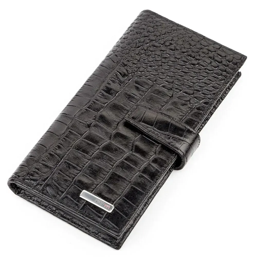 Вертикальний чоловічий гаманець із натуральної фактурної шкіри під рептилію. Дуже красивий та якісний аксесуар, з яким чоловік завжди буде виглядати стильно та успішно.