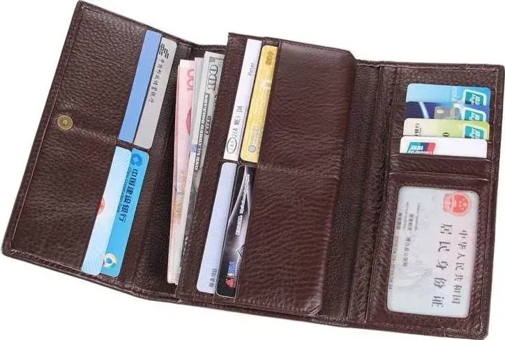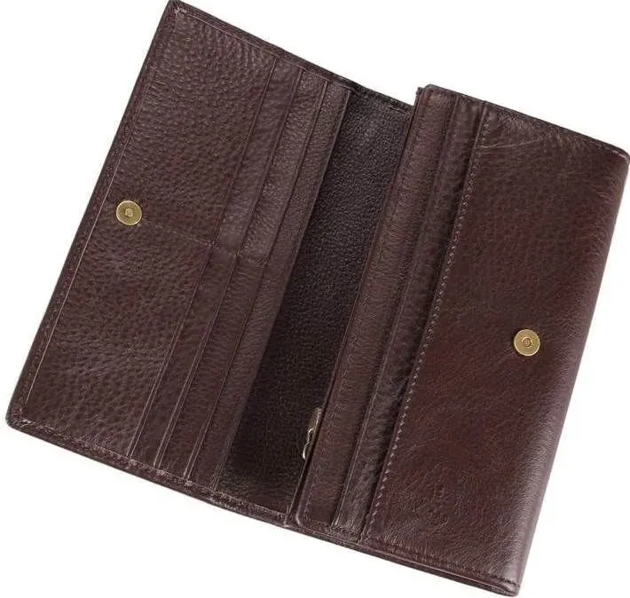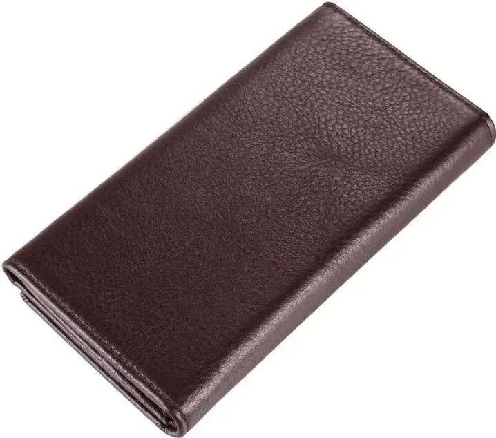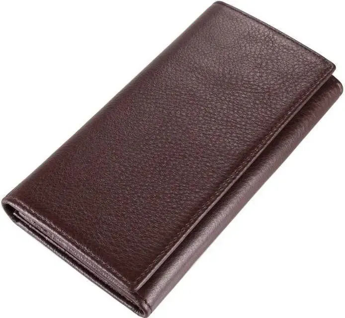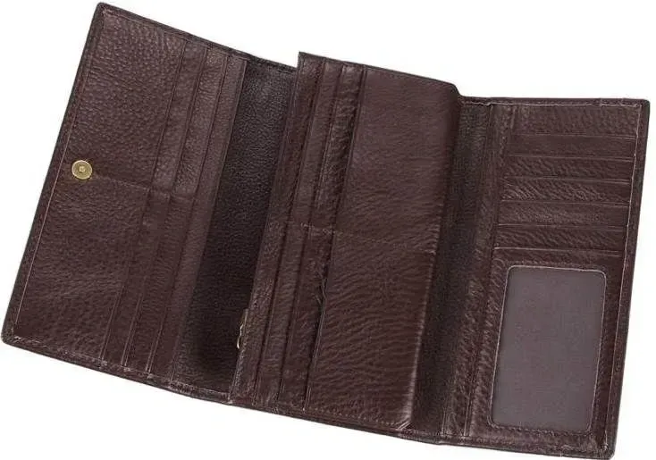 Місткий гаманець коричневого кольору з натуральної шкіри. Гаманець представлений у класичному стилі, при цьому його дизайн підкреслює аристократичність власника даного гаманця. У гаманці багато відділень для карток та купюр. Шкіра на дотик м'яка, всередині кишені прошиті щільною тканиною. Закривається гаманець на магнітну кнопку. Запакований у текстильний чохол білого кольору.