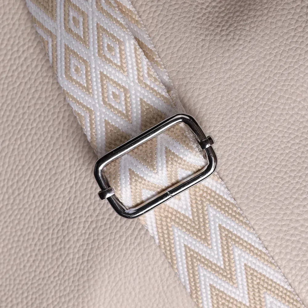Білий відтінок надає сумці витонченість і робить її ідеальним доповненням як до повсякденних, так і до більш ошатних образів. Фурнітура сріблястого кольору додає легкий блиск і наголошує на вишуканості аксесуара. Знімний текстильний ремінь забезпечує комфортну посадку на плече або через плече, роблячи сумку практичною для активного міського ритму.
