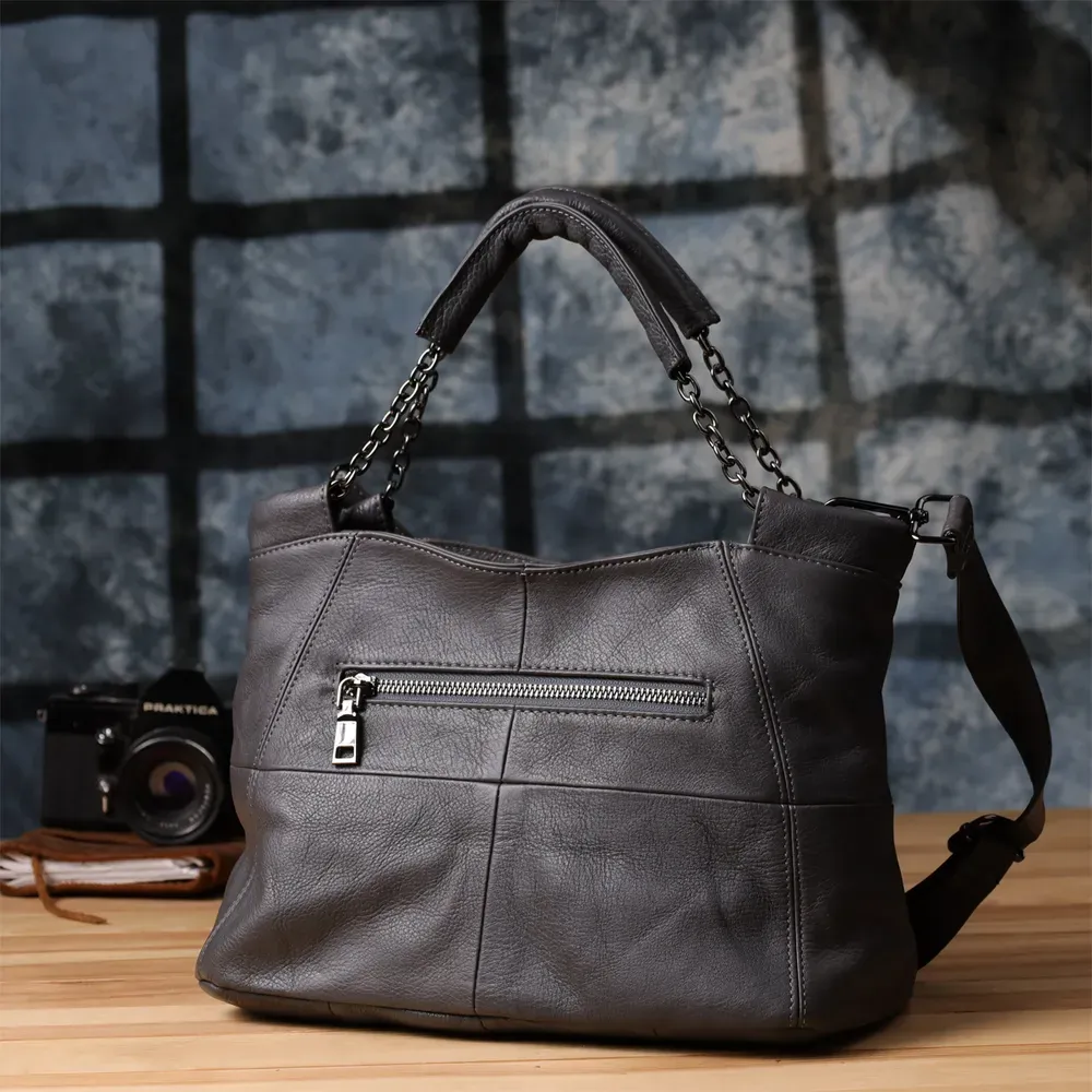 Жіноча шкіряна сумка Vintage сірого кольору – поєднання елегантності та практичності. Виготовлена з натуральної шкіри високої якості, ця сумка відрізняється благородним сірим відтінком, який легко вписується в будь-який гардероб і підходить для різних образів - від ділового до повсякденного. Компактні розміри роблять модель зручною та функціональною, дозволяючи носити всі необхідні речі під рукою.