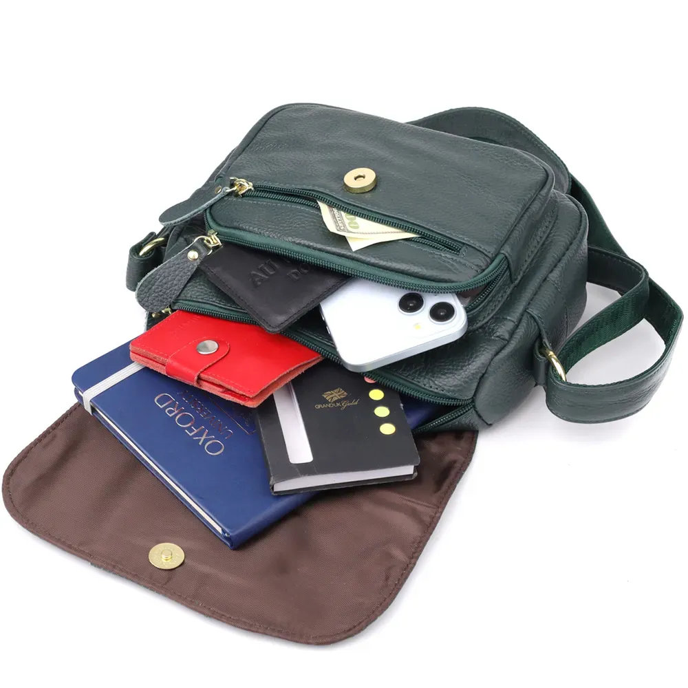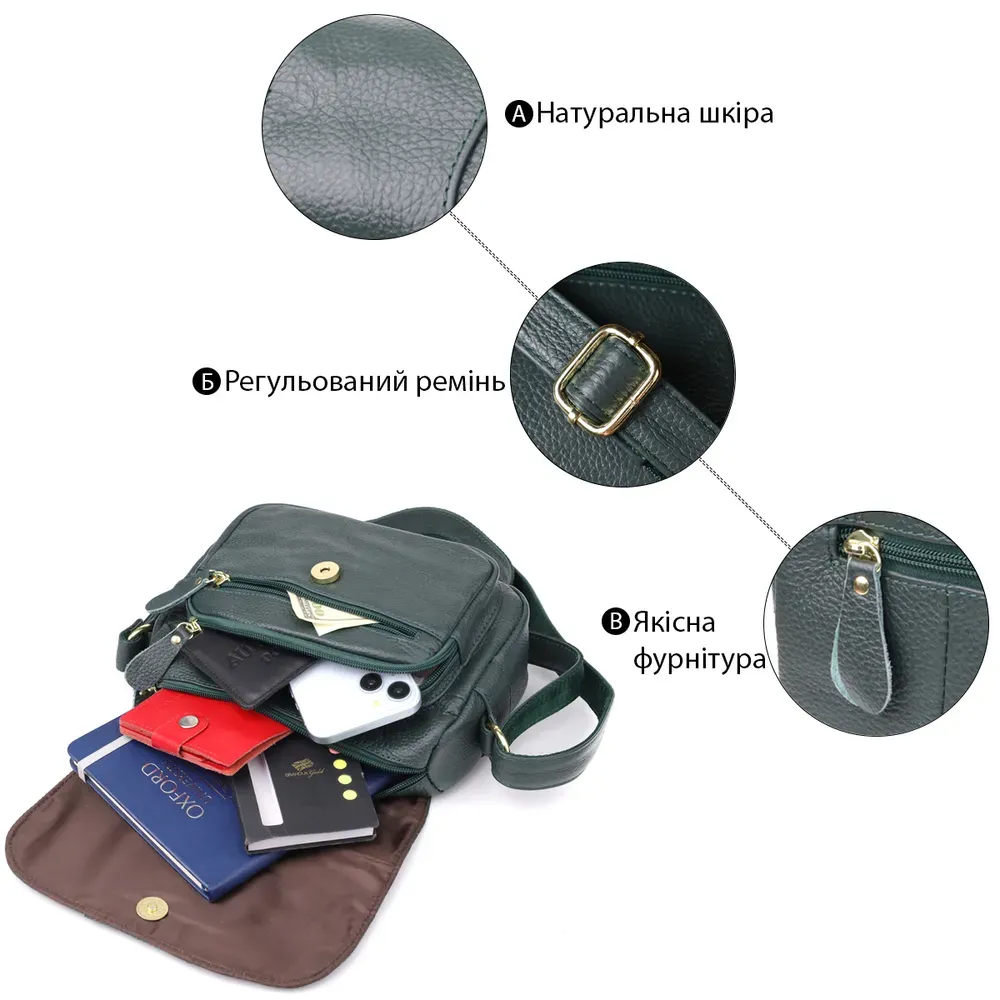 Ця шкіряна сумка на плече - ідеальний вибір для жінок, які цінують практичність, стиль та порядок у кожній деталі.