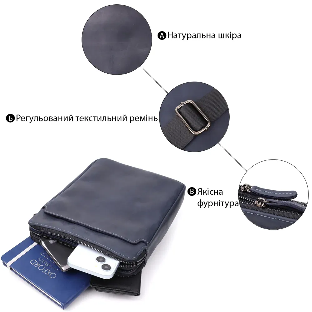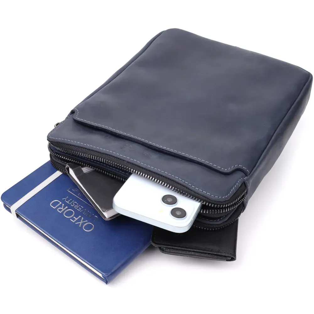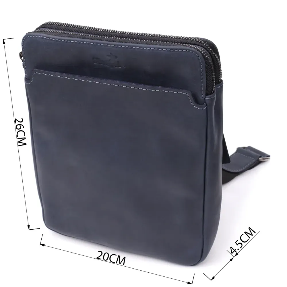 Практична чоловіча сумка через плече із вінтажної натуральної шкіри Shvigel 20867_1 Синій