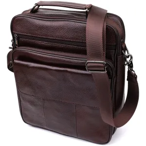 Практична чоловіча сумка з ручкою для перенесення в руці з натуральної шкіри Vintage 23024 Коричневий