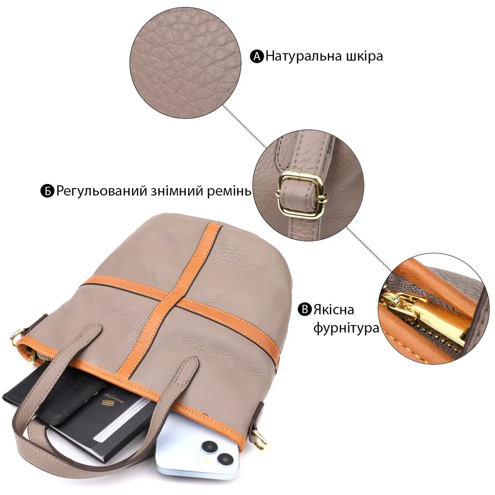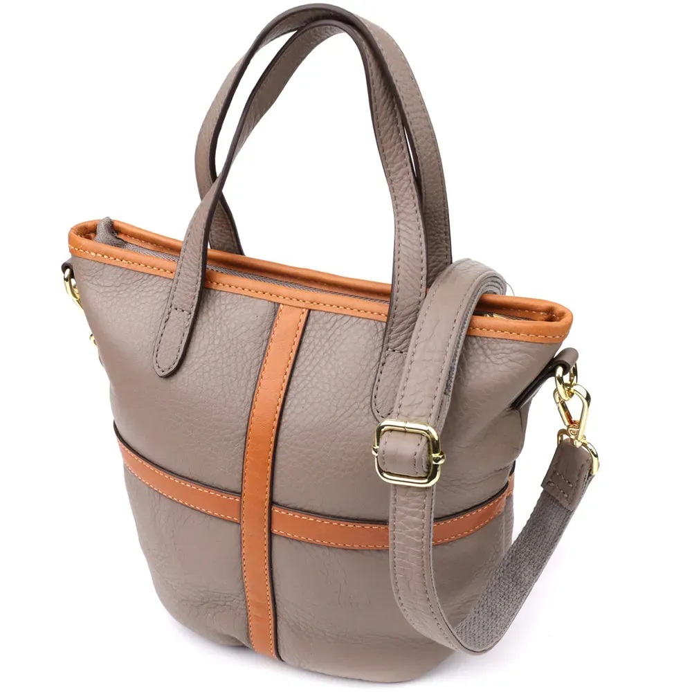 Сіра шкіряна сумка у вигляді трапеції - ідеальний вибір для жінок, які цінують стриманий шик, якість та продуманий дизайн.